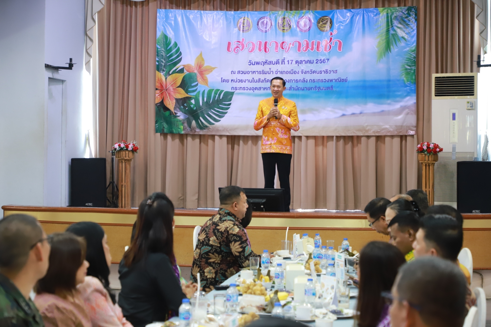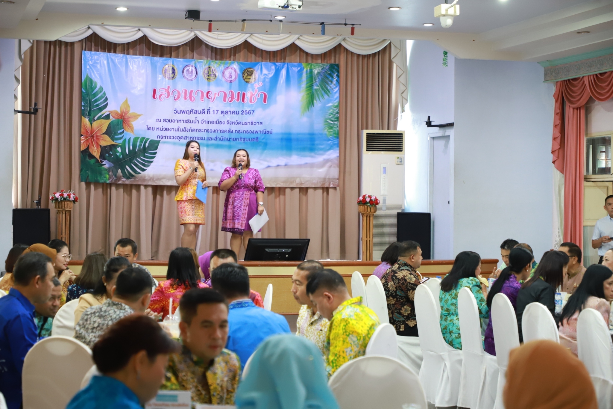 นายปฏิเวชวุฒิศักย์ สุขขี ผู้อำนวยการแขวงทางหลวงนราธิวาส มอบหมายให้นายธวัชชัย เผนานนท์ รองผู้อำนวยการแขวงทางหลวงนราธิวาส ฝ่ายวิศวกรรม และนางอรัญญา เพ็ชรพูล รองผู้อำนวยการแขวงทางหลวงนราธิวาส (ฝ่ายบริหาร) นายวีระชัย ปัญญาเถิง ผู้อำนวยการหมวดทางหลวงอาวุโสนราธิวาส พร้อมด้วยเจ้าหน้าที่ในสังกัด เข้าร่วมกิจกรรม "เสวนายามเช้า" ณ สวนอาหารริมน้ำ โดยมีหน่วยงานในสังกัดกระทรวงอุตสาหกรรม กระทรวงพาณิชย์ สำนักนายกรัฐมนตรี เป็นเจ้าภาพการจัดกิจกรรมดังกล่าว ในการนี้ได้เข้าร่วมพิธีส่งมอบป้ายการจัดกิจกรรม เสวนายามเช้า ในครั้งถัดไป