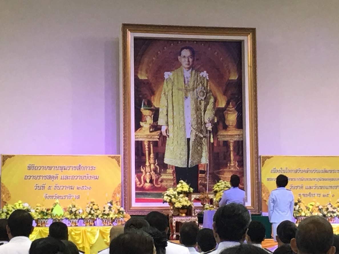 พิธีถวายพานพุ่ม ถวายราชสักการะ ณ หอประชุมเฉลิมพระเกียรติ 7 รอบพระชนมพรรษา ศาลากลางจังหวัดนราธิวาส