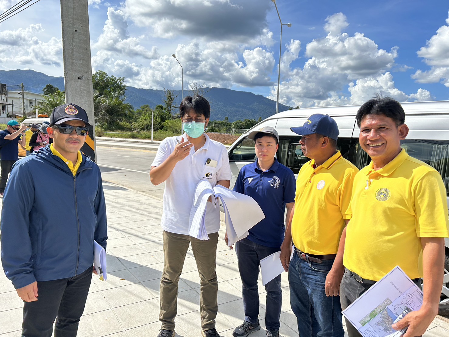 ร่วมกับเจ้าหน้าที่สำนักสำรวจออกแบบ กรมทางหลวง ลงพื้นที่ดำเนินการตรวจสอบ และเก็บข้อมูลเพื่อออกแบบ โครงการก่อสร้าง ทางหลวงหมายเลข 4056 ระหว่าง กม.19+775 - กม.36+275