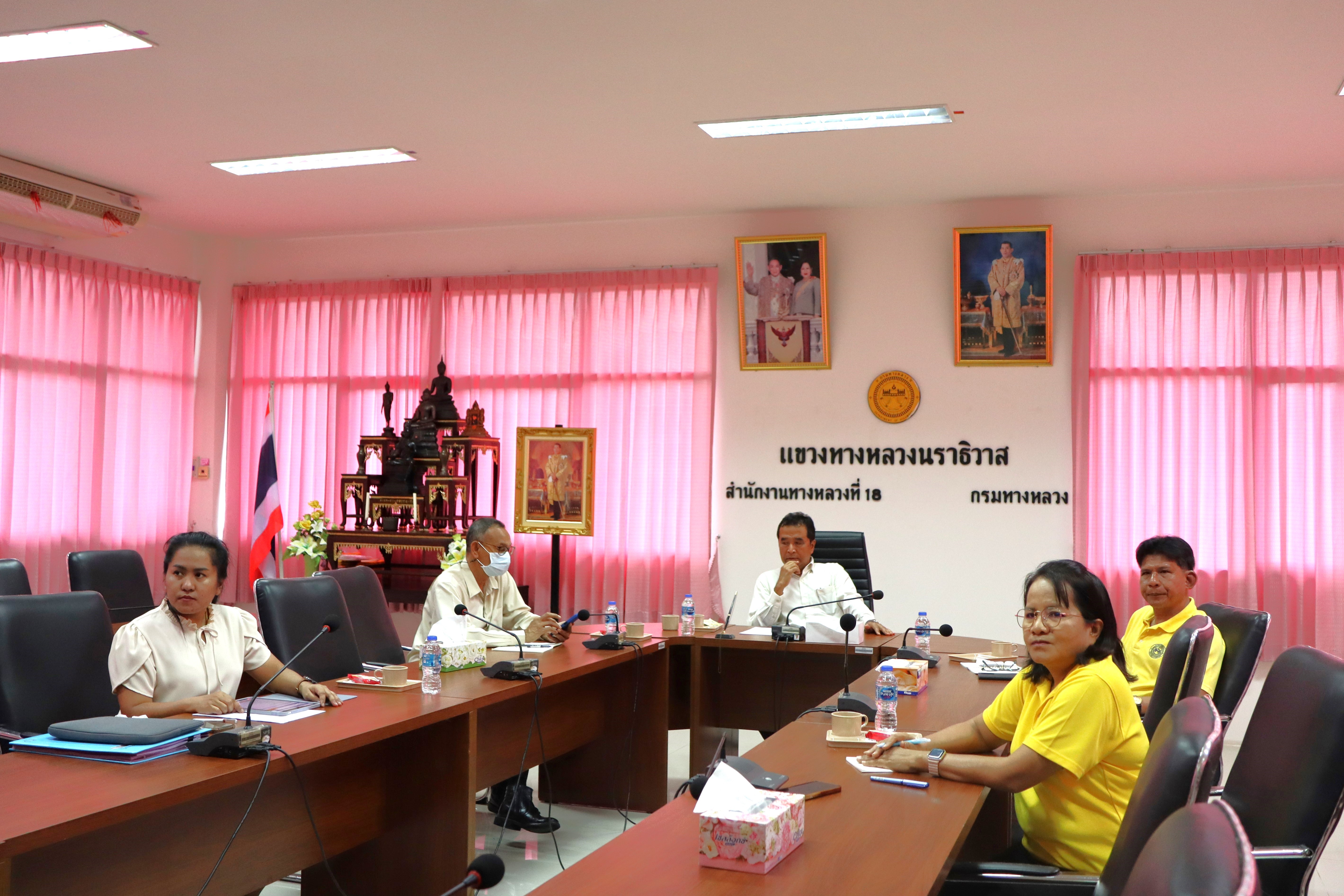 นายสมัคร เลือดวงหัด ผู้อำนวยการแขวงทางหลวงนราธิวาส พร้อมด้วยรองผู้อำนวยการแขวงทางหลวงนราธิวาส ฝ่ายปฏิบัติการ ฝ่ายวิศวกรรม ฝ่ายบริหาร หัวหน้างาน ข้าราชการ และเจ้าหน้าที่ที่เกี่ยวข้อง เข้าร่วมโครงการสัมมนาผู้บริหารกรมทางหลวง ประจำปีงบประมาณ พ.ศ. 2567 เรื่อง การขับเคลื่อนนโยบายรัฐบาล และนำองค์กรสู่เป้าหมายภายใต้นโยบาย "คมนาคมเพื่อความอุดมสุขของประชาชน" ผ่านระบบ Zoom Cloud Meeting ณ ห้องประชุมแขวงทางหลวงนราธิวาส ชั้น 3 ในการนี้มีนายสราวุธ ทรงศิวิไล อธิบดีกรมทางหลวง เป็นประธานในการสัมมนา พร้อมด้วยผู้บริหารหน่วยงานส่วนกลาง และผู้บริหารส่วนภูมิภาคเข้าร่วม