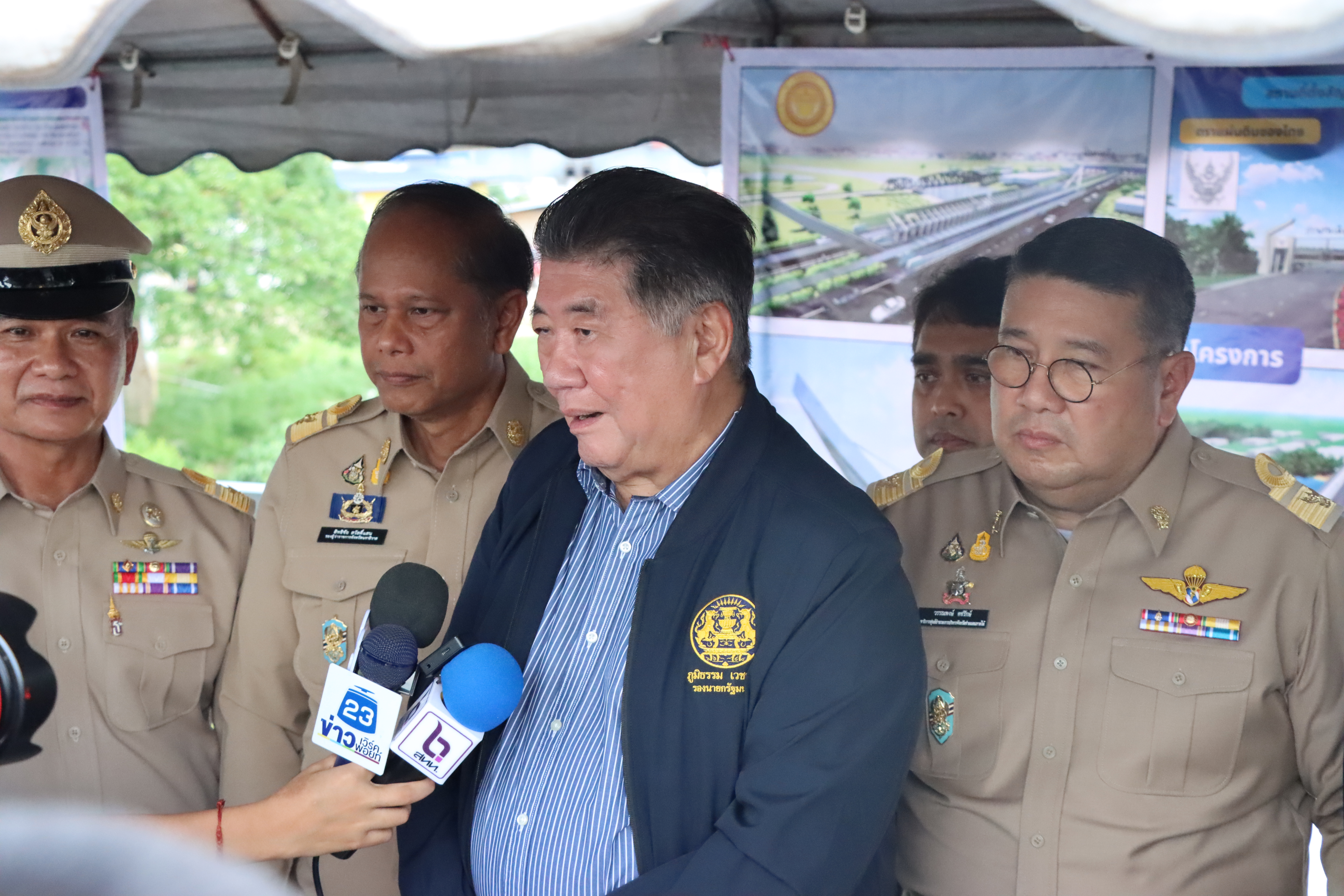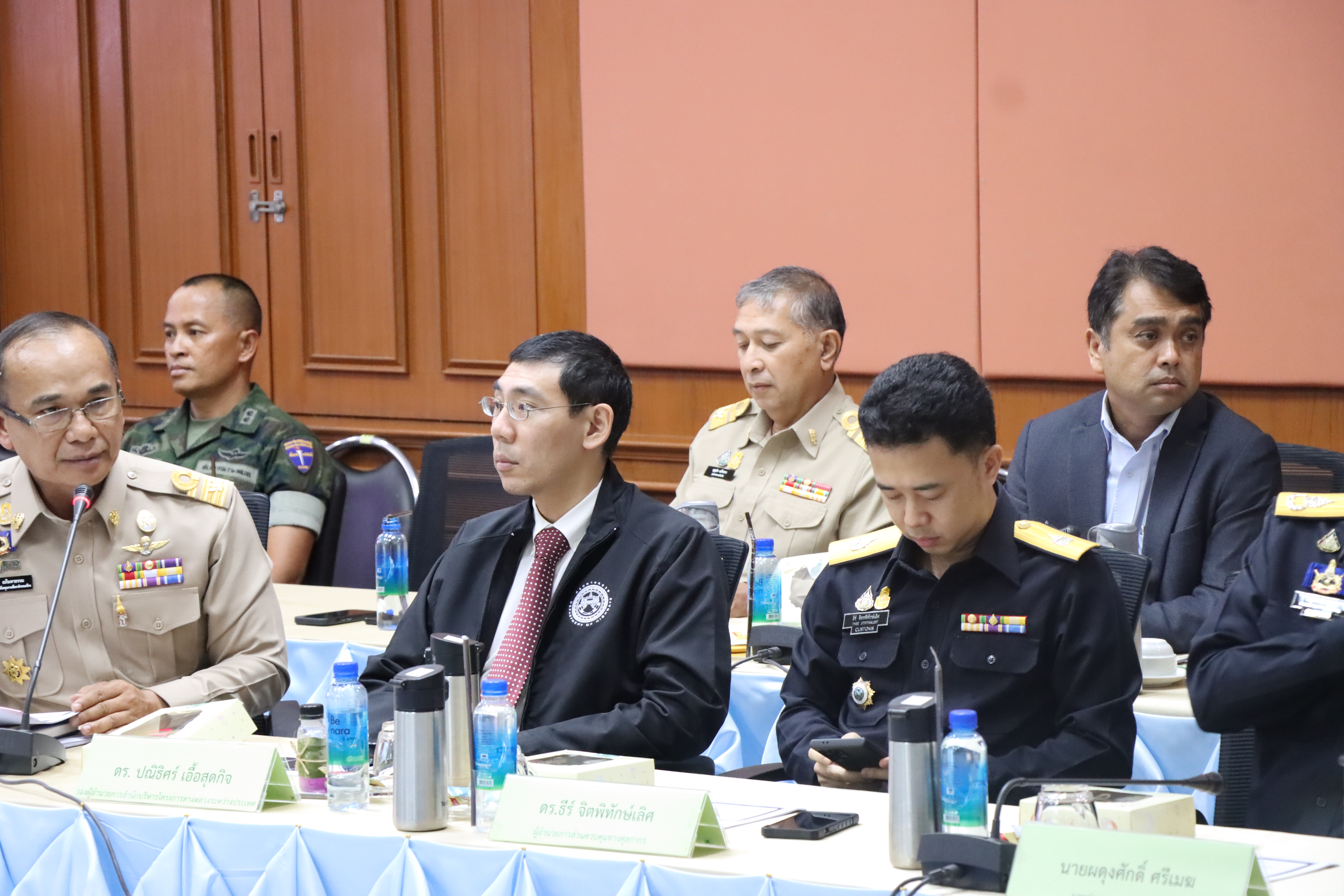 นายจอมปวีร์ จันทร์หิรัญ ผู้อำนวยการสำนักงานทางหลวงที่ 18 พร้อมด้วย ดร.ปณิธิศร์ เอื้อสุดกิจ ผู้เชี่ยวชาญวิชาชีพเฉพาะด้านวิศวกรรมโยธา (ด้านวางแผน) สำนักบริหารโครงการทางหลวงระหว่างประเทศ กรมทางหลวง ร่วมต้อนรับนายภูมิธรรม เวชยชัย รองนายกรัฐมนตรี รัฐมนตรีว่าการกระทรวงพาณิชย์ และประธานคณะกรรมการยุทธศาสตร์ด้านการพัฒนาจังหวัดชายแดนภาคใต้ (กพต.) และคณะ ลงพื้นที่ด่านศุลกากรสุไหงโก-ลก อ.สุไหงโก-ลก จ.นราธิวาส เพื่อประชุมติดตามความคืบหน้าการยกระดับ พัฒนาจังหวัดชายแดนภาคใต้ของไทยกับรัฐติดชายแดนของมาเลเซียสู่การเป็นเมืองคู่แฝด (Twin Cities) โดยมี พ.ต.ท.วรรณพงษ์ คชรักษ์ เลขาธิการศูนย์อำนวยการบริหารจังหวัดชายแดนภาคใต้ (ศอ.บต.) พลโท ศานติ ศกุลตนาค แม่ทัพภาคที่ 4 รองเลขาธิการ ศอ.บต. รองผู้ว่าราชการ จ.นราธิวาส และหัวหน้าส่วนราชการในพื้นที่ร่วมต้อนรับ ร่วมประชุมรายงานความคืบหน้าการพัฒนาที่เกี่ยวข้อง
