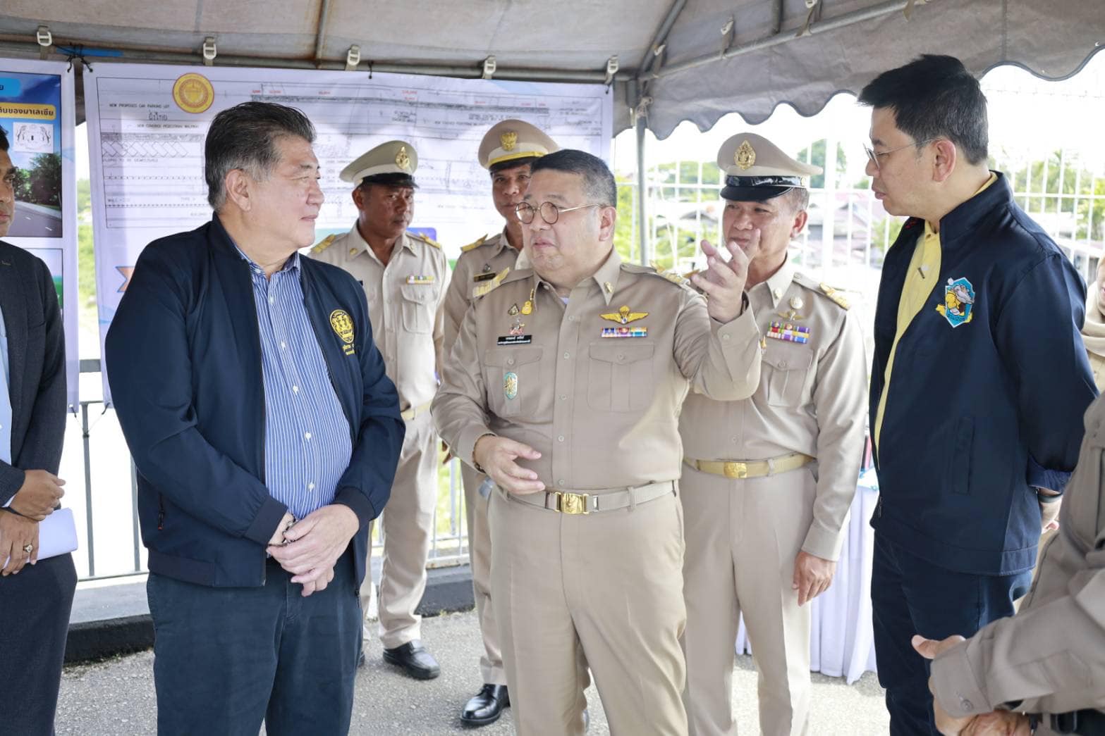 ทั้งนี้ รองนายกรัฐมนตรี และคณะ เดินทางตรวจพื้นที่เตรียมการก่อสร้างสะพานข้ามแม่น้ำโก-ลก แห่งที่ 2 ในการนี้มีนายธวัชชัย เผนานนท์ รองผู้อำนวยการแขวงทางหลวงนราธิวาส (ฝ่ายวิศวกรรม) พร้อมด้วยนายศุภชาติ คงประเสริฐ หัวหน้าหมวดทางหลวงสุไหงโก-ลก เป็นผู้นำเสนอข้อมูลของโครงการดังกล่าว
