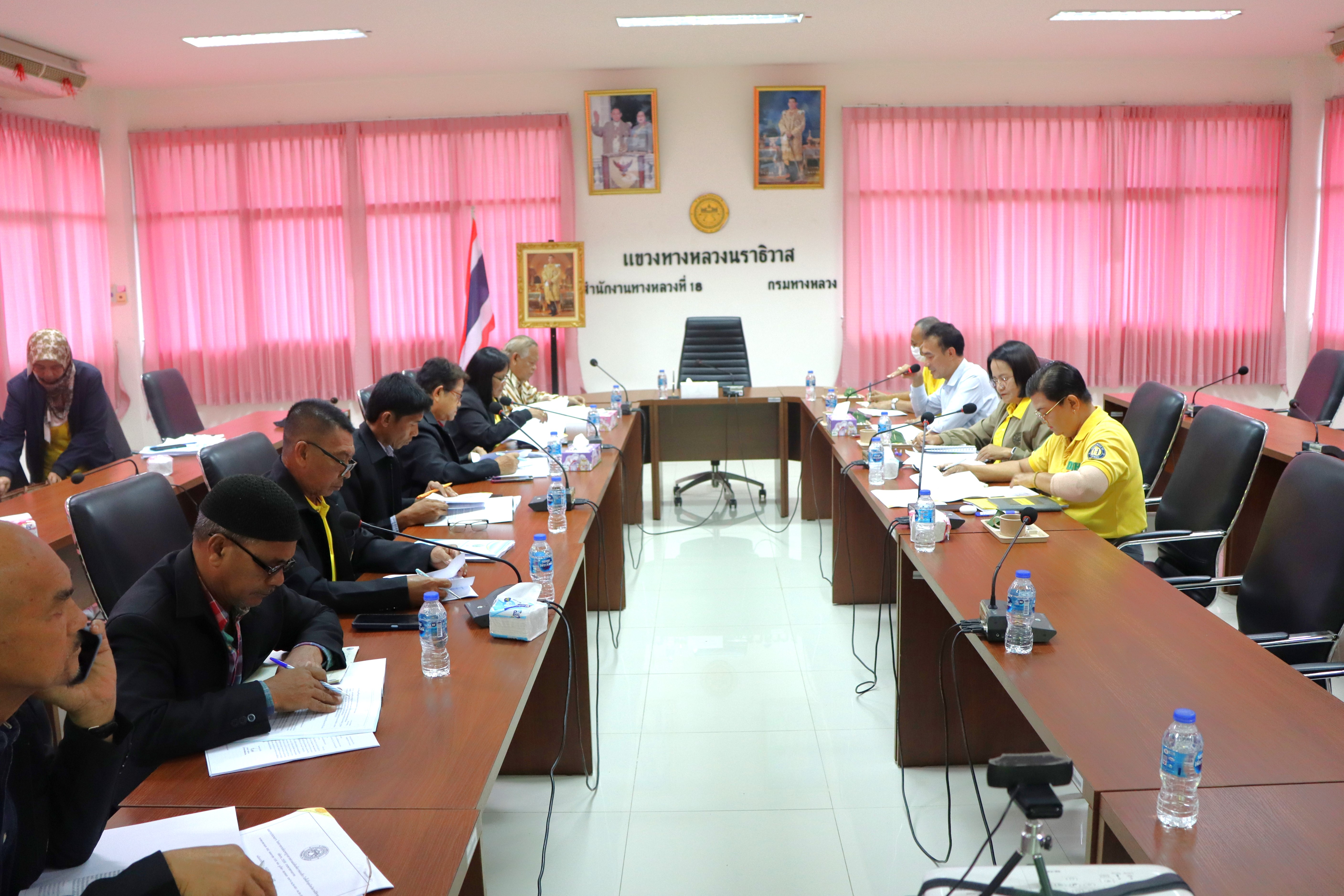 นายปฏิเวชวุฒิศักย์ สุขขี ผู้อำนวยการแขวงทางหลวงนราธิวาส มอบหมายให้นายจำลอง จันสุข รองผู้อำนวยการแขวงทางหลวงนราธิวาส (ฝ่ายปฏิบัติการ) นางอรัญญา เพ็ชรพูล รองผู้อำนวยการแขวงทางหลวงนราธิวาส (ฝ่ายบริหาร) นายวีระชัย ปัญญาเถิง ผู้อำนวยการหมวดทางหลวงอาวุโสนราธิวาส นางอุบลวรรณ วั่นเซ่ง หัวหน้างานพัสดุและสัญญา นายณพงศธร อิสสราวงศ์ หัวหน้างานวางแผน นางสาววรนุช สุขไสย นักวิชาการพัสดุชำนาญการ ร่วมกับคณะกรรมการธรรมาภิบาลจังหวัดนราธิวาส (ก.ธ.จ. นราธิวาส) ร่วมประชุมและติดตามแผนการดำเนินงานงบประมาณกลุ่มจังหวัดฯ ประจำปีงบประมาณ 2567 โดยมีการติดตามแผนการดำเนินงาน และการดำเนินงานการจัดซื้อจัดจ้าง ณ ห้องประชุม ชั้น 3 แขวงทางหลวงนราธิวาส