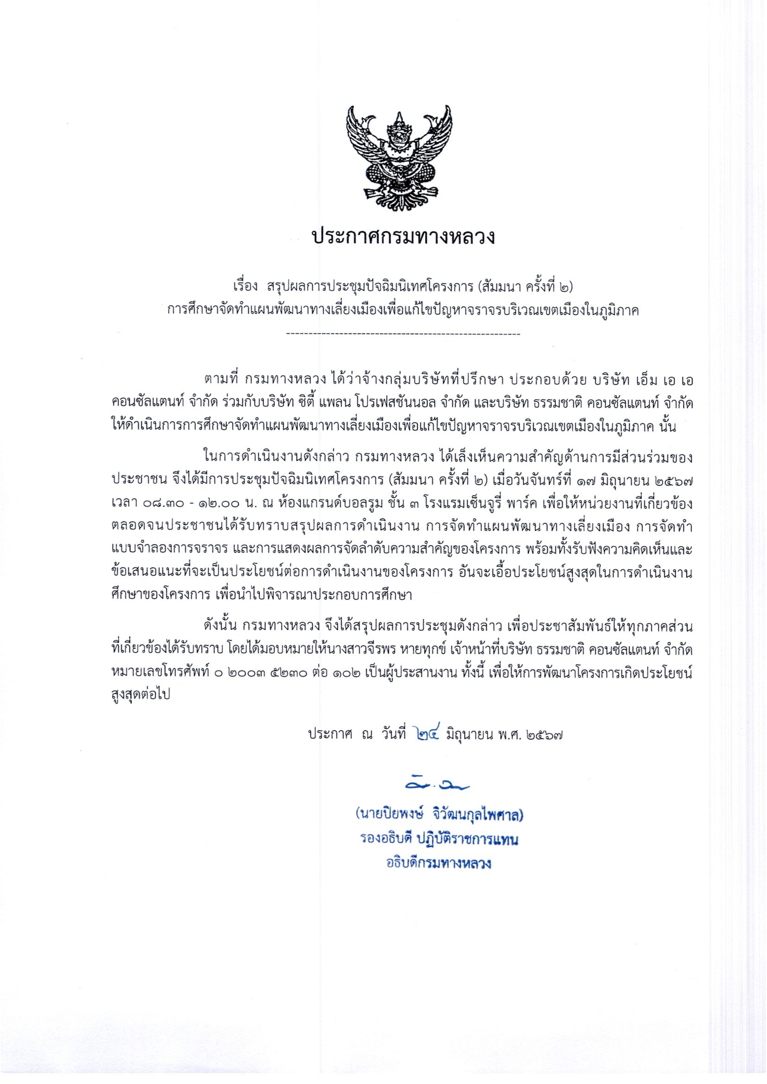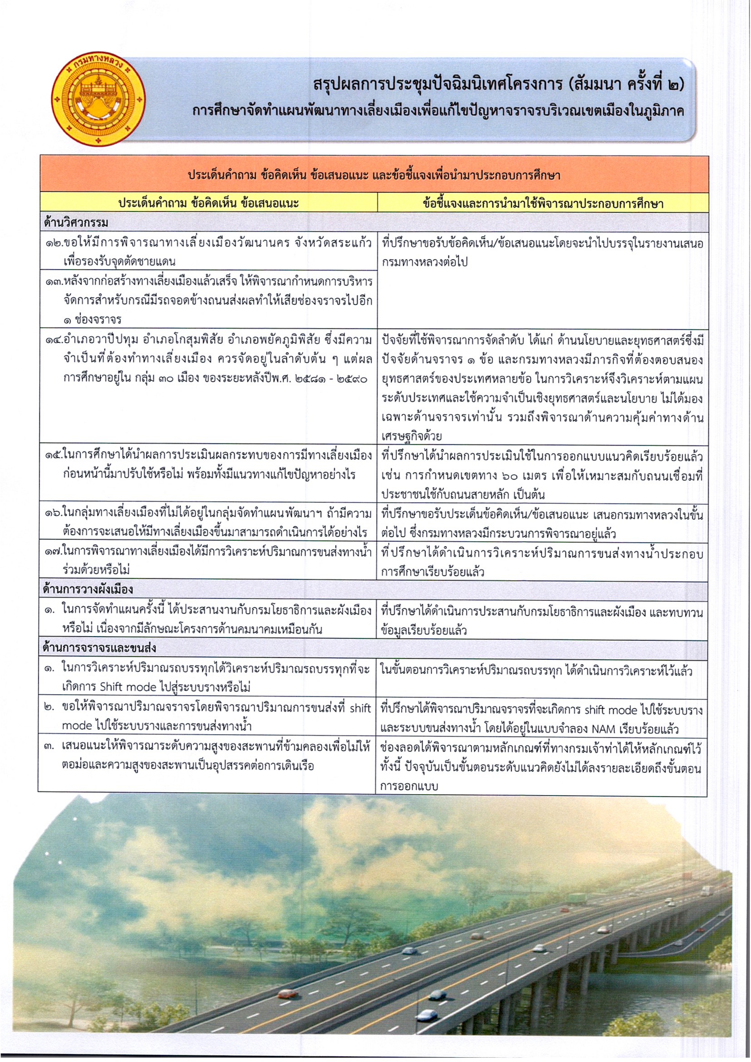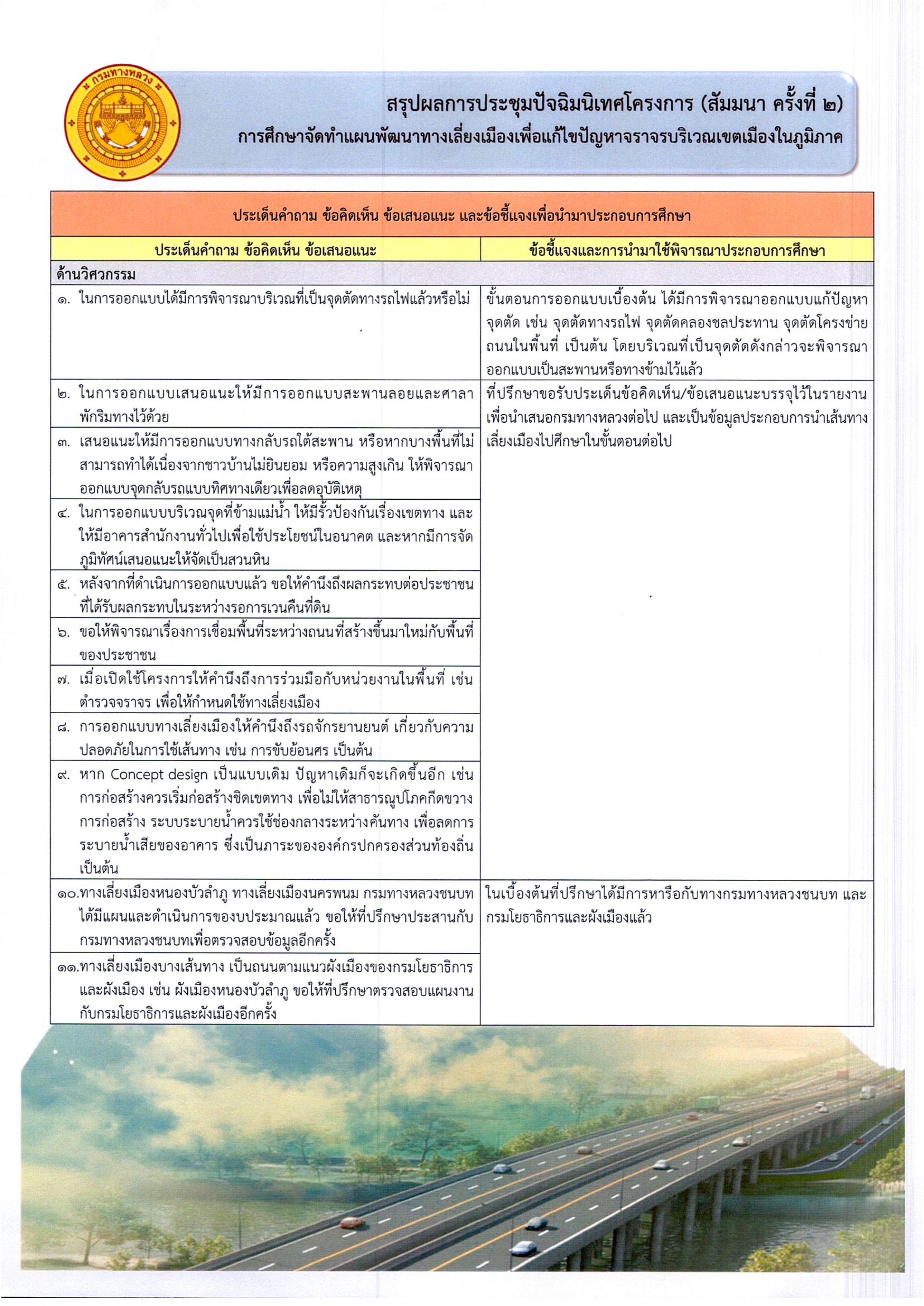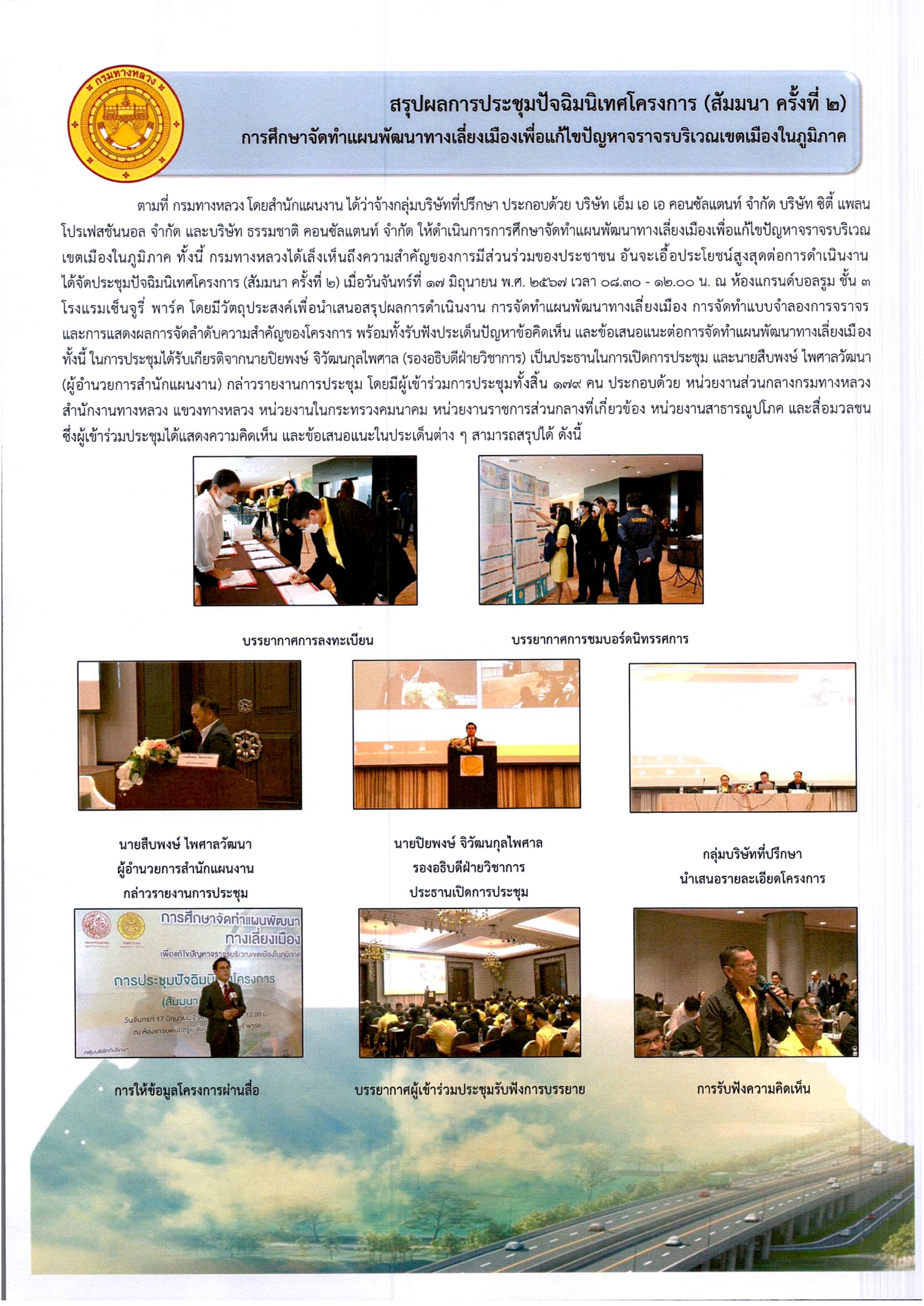 ประชาสัมพันธ์ สรุปผลการประชุมปัจฉิมนิเทศ (สัมมนาครั้งที่ 2) การศึกษาจัดทำแผนการพัฒนาทางเลี่ยงเมืองเพื่อแก้ไขปัญหาจราจรบริเวณเขตเมืองในภูมิภาค