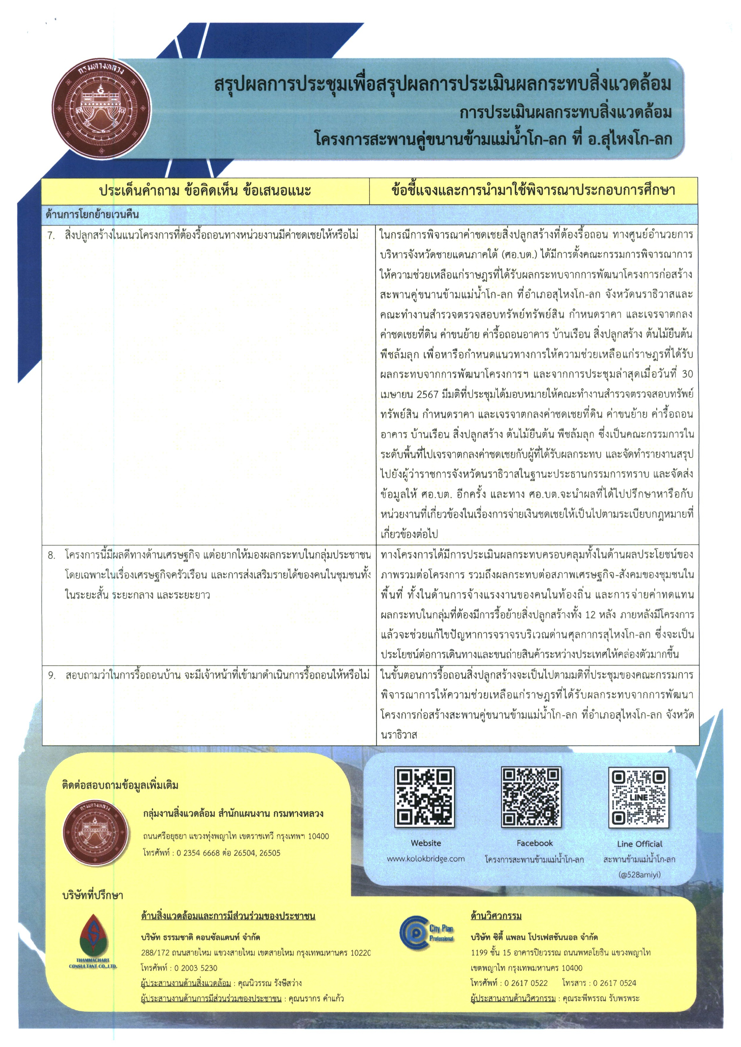 สรุปผลการประชุมเพื่อหารือแนวทางการประเมินผลกระทบสิ่งแวดล้อม การประเมินผลกระทบสิ่งแวดล้อม