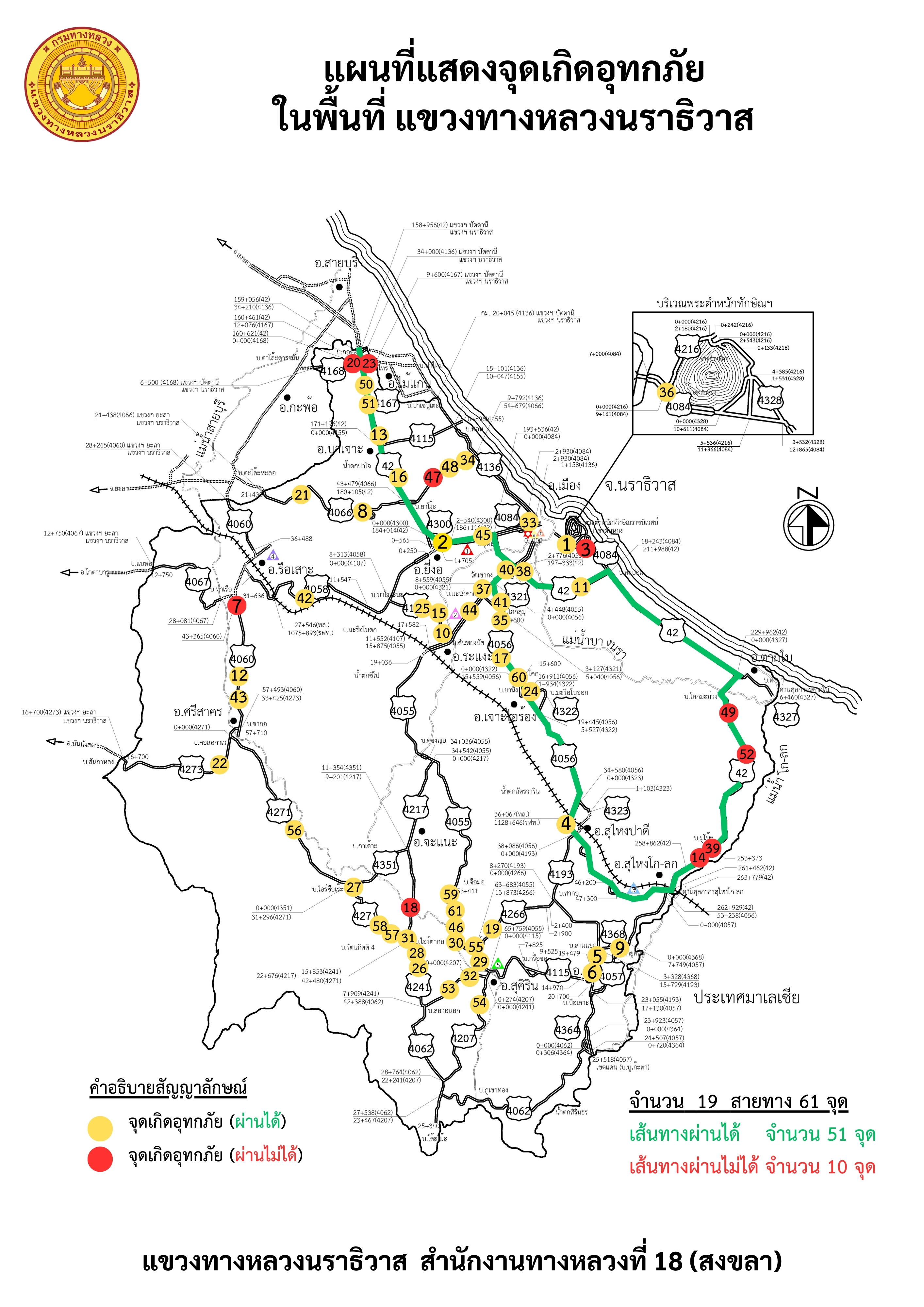 แขวงทางหลวงนราธิวาส ขอรายงานสถานการณ์อุทกภัยในพื้นที่จังหวัดนราธิวาส