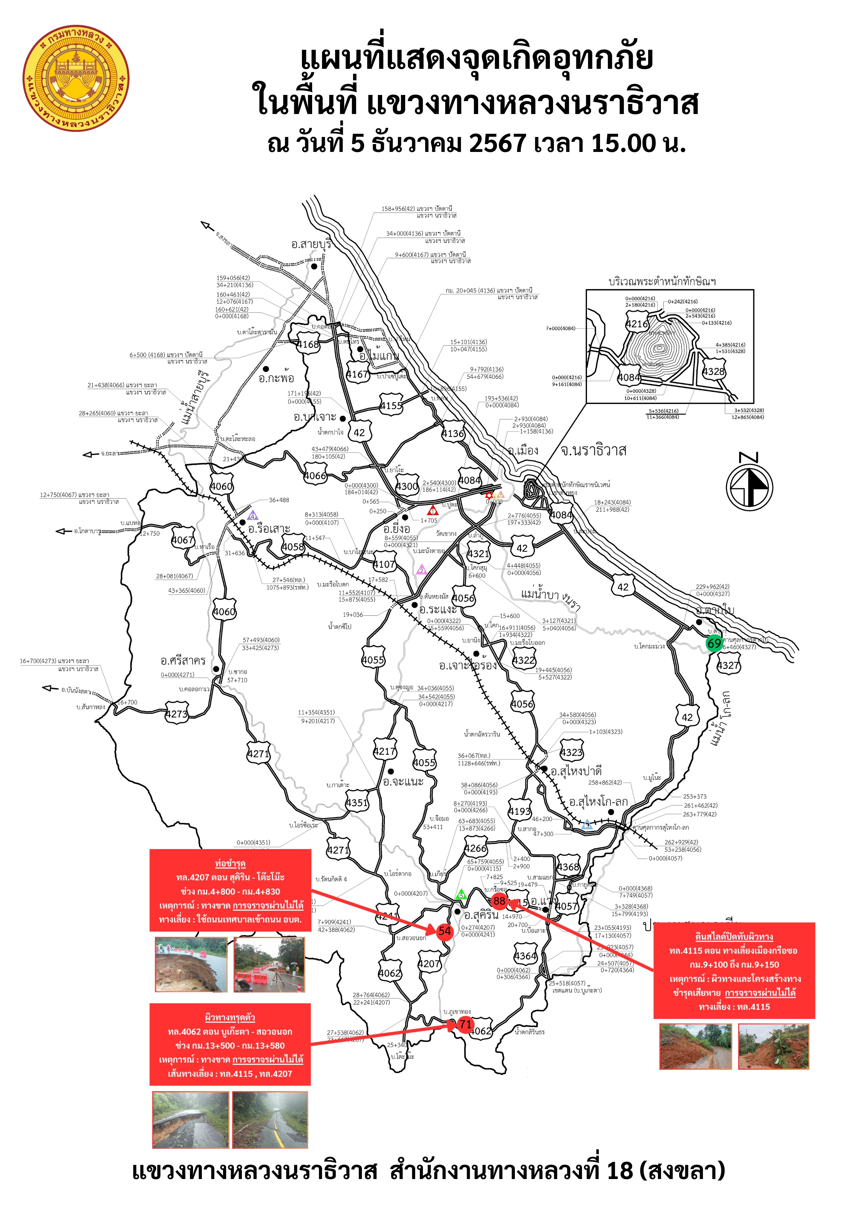 แขวงทางหลวงนราธิวาส ขอรายงานสถานการณ์อุทกภัยในพื้นที่จังหวัดนราธิวาส