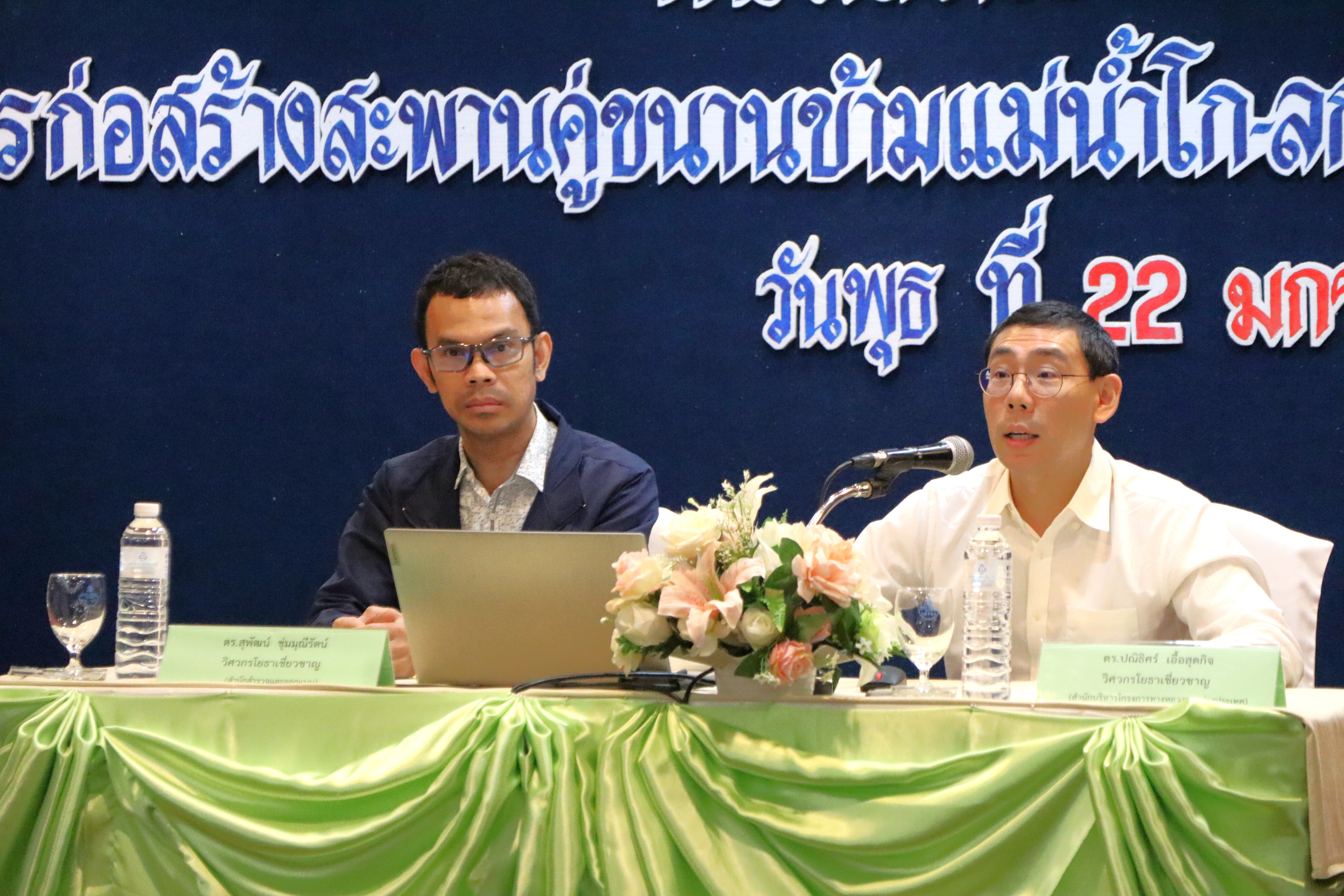นายปฏิเวชวุฒิศักย์ สุขขี ผู้อำนวยการแขวงทางหลวงนราธิวาส พร้อมด้วยรองผู้อำนวยการแขวงทางหลวงนราธิวาส ฝ่ายปฏิบัติการ ฝ่ายวิศวกรรม ฝ่ายบริหาร หัวหน้าหมวดทางหลวงสุไหงโก-ลก หัวหน้างาน ข้าราชการ และเจ้าหน้าที่แขวงทางหลวงนราธิวาส ร่วมดำเนินการจัดประชุมเพื่อการมีส่วนร่วมของประชาชน ตามระเบียบสำนักนายกรัฐมนตรีว่าด้วยการรับฟังความคิดเห็นของประชาชน พ.ศ.2548 "โครงการสะพานคู่ขนานข้ามแม่น้ำโก-ลก ที่ อ.สุไหงโก-ลก จ.นราธิวาส" โดยในการประชุมครั้งนี้มีนายวีรพัฒน์ บุณฑริก รองผู้ว่าราชการจังหวัดนราธิวาส เป็นประธานในพิธี และมี ดร.ปณิธิศร์ เอื้อสุดกิจ วิศวกรโยธาเชี่ยวชาญ สำนักบริหารโครงการทางหลวงระหว่างประเทศ ดร.สุพัฒน์ ชุ่มมุณีรัตน์ วิศวกรโยธาเชี่ยวชาญ สำนักสำรวจและออกแบบ นายสุรเดช อูมาร์ นายช่างโครงการ และนายเสนีย์ เสถียร ผู้อำนวยการฝ่ายสำรวจและออกแบบ ศูนย์สร้างทางสงขลา ร่วมบรรยายรูปแบบรายละเอียดการก่อสร้างโครงการ และร่วมตอบข้อเสนอแนะความคิดเห็นเกี่ยวกับโครงการดังกล่าว เพื่อให้สอดคล้องกับความต้องการของประชาชน และส่งเสริมให้ประชาชนเข้ามามีบทบาทและมีส่วนร่วมในกระบวนการพัฒนาทางหลวง ซึ่งในการประชุมในครั้งนี้มีหน่วยงานที่เกี่ยวข้อง ผู้นำชุมชน และประชาชนในพื้นที่เข้าร่วมเป็นจำนวน 130 คน ณ ห้องประชุมปลายสยาม ชั้น 10 โรงแรมเก็นติ้ง อำเภอสุไหงโก-ลก จังหวัดนราธิวาส