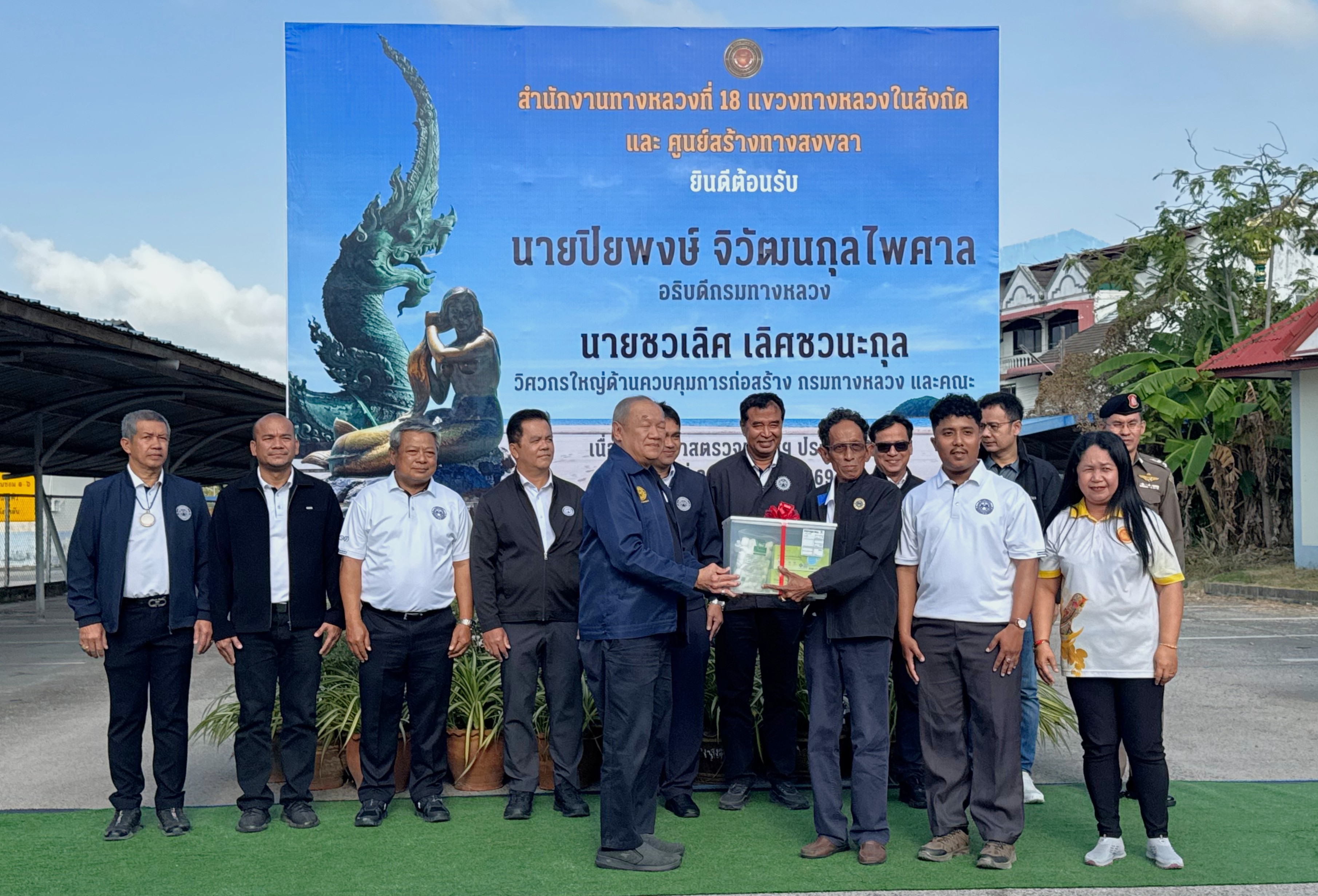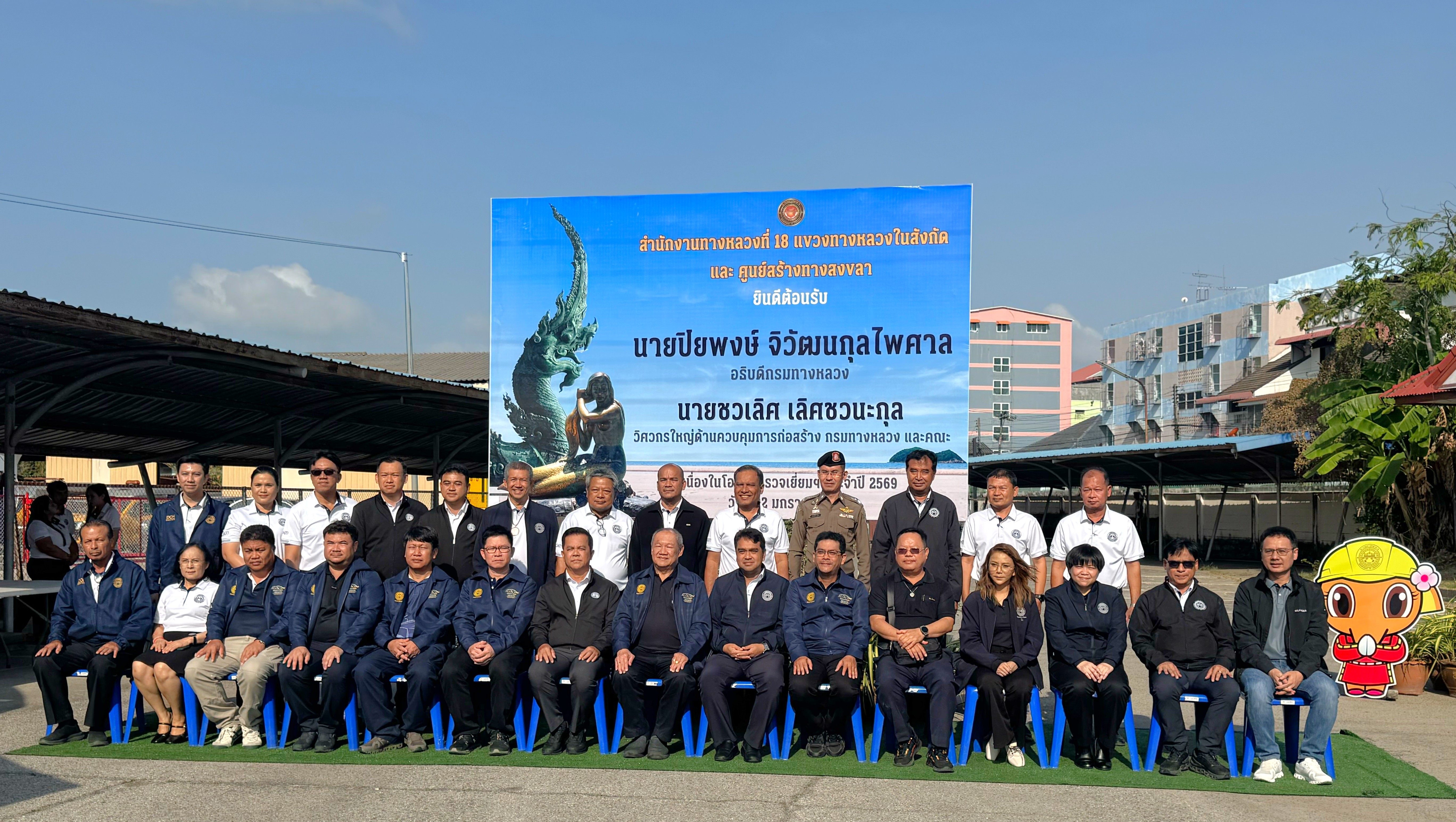 วันที่ 22 มกราคม 2569 นายสมนึก เศียรอุ่น ผู้อำนวยการแขวงทางหลวงนราธิวาส พร้อมด้วยรองผู้อำนวยการแขวงทางหลวงนราธิวาส ฝ่ายบริหาร ผู้อำนวยการหมวดทางหลวงอาวุโสนราธิวาส หัวหน้าหมวดทางหลวงระแงะ และเจ้าหน้าที่ในสังกัด ได้ร่วมให้การต้อนรับ นายชวเลิศ เลิศชวนะกุล วิศวกรใหญ่ด้านควบคุมการก่อสร้าง และคณะ ในการลงพื้นที่ตรวจเยี่ยมหน่วยงานในสังกัดสำนักงานทางหลวงที่ 18 (สงขลา)