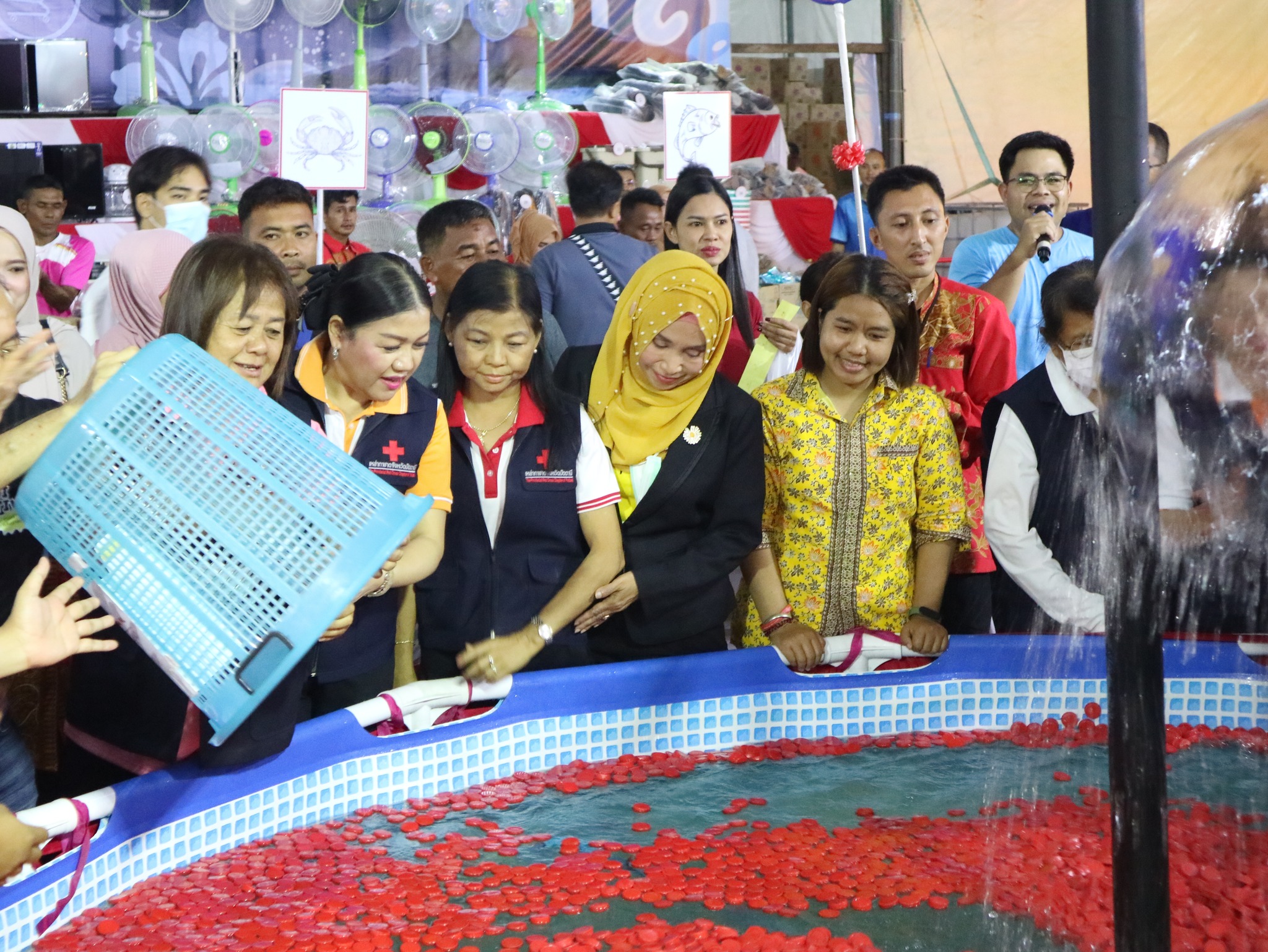 และนางธันย์ภัคนันท์ อุสมันบาฮา ร่วมปฏิบัติงานและมอบรางวัลภายในร้านนาวากาชาด จังหวัดปัตตานี