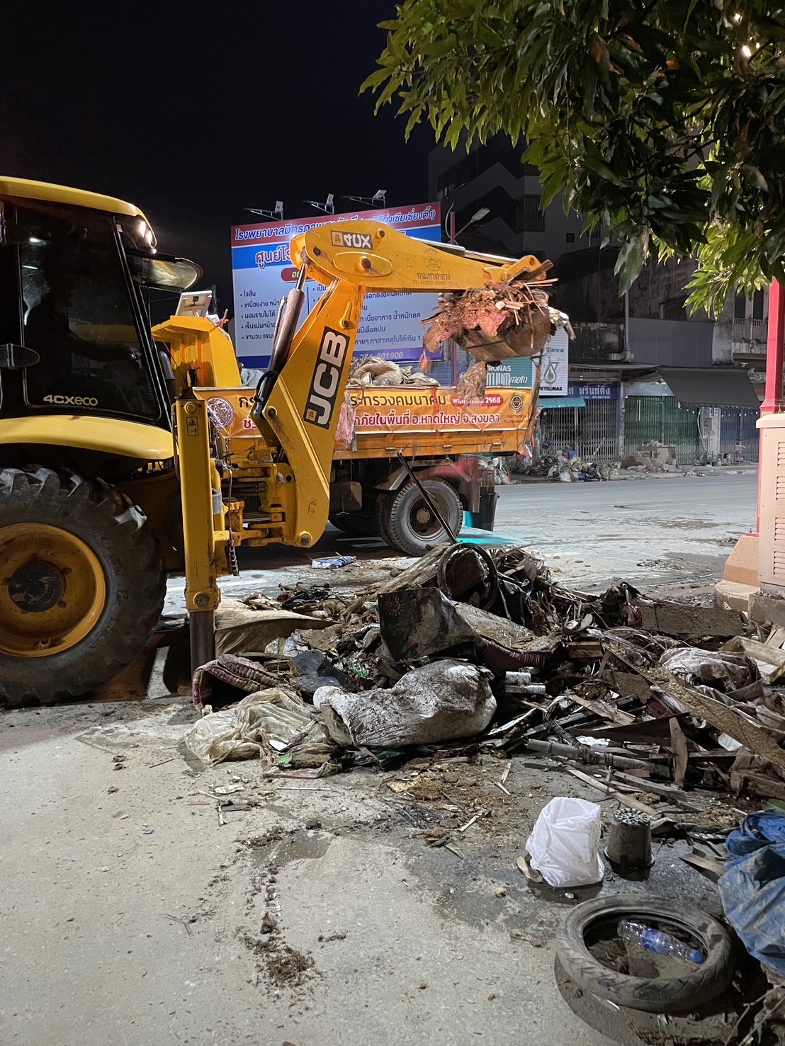 กองบัญชาการป้องกันและบรรเทาสาธารณภัยแห่งชาติ (ส่วนหน้า) เร่งฟื้นฟูเมืองหาดใหญ่เคลียร์ขยะและทำความสะอาดพื้นที่ตลอด 24 ชั่วโมง ตั้งเป้าสัปดาห์นี้เสร็จ 100% ตามแผนรัฐบาล "7 วันกลับบ้าน 14 วันสะอาด"