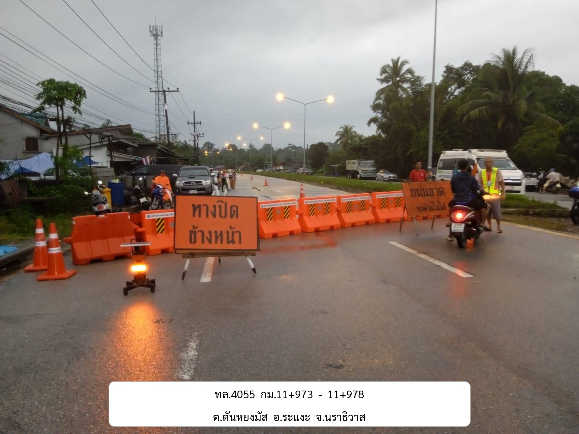 แขวงทางหลวงนราธิวาส ขอปิดทางหลวงหมายเลข 4055 เนื่องจากคอสะพานชำรุด