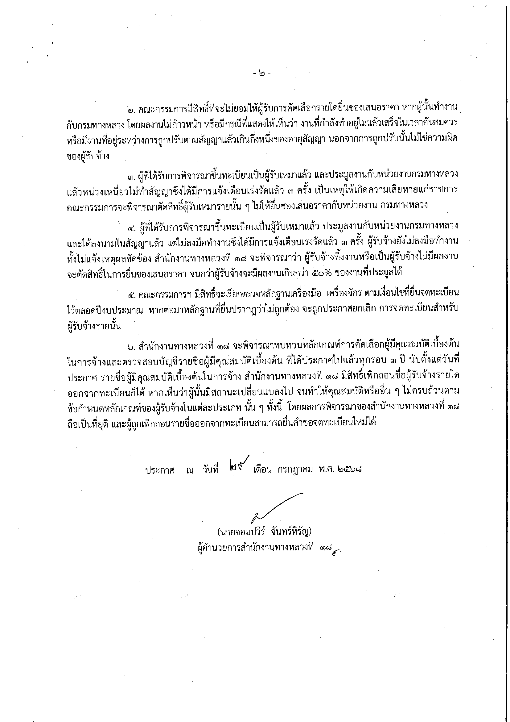 ประกาศสำนักงานทางหลวงที่ 18