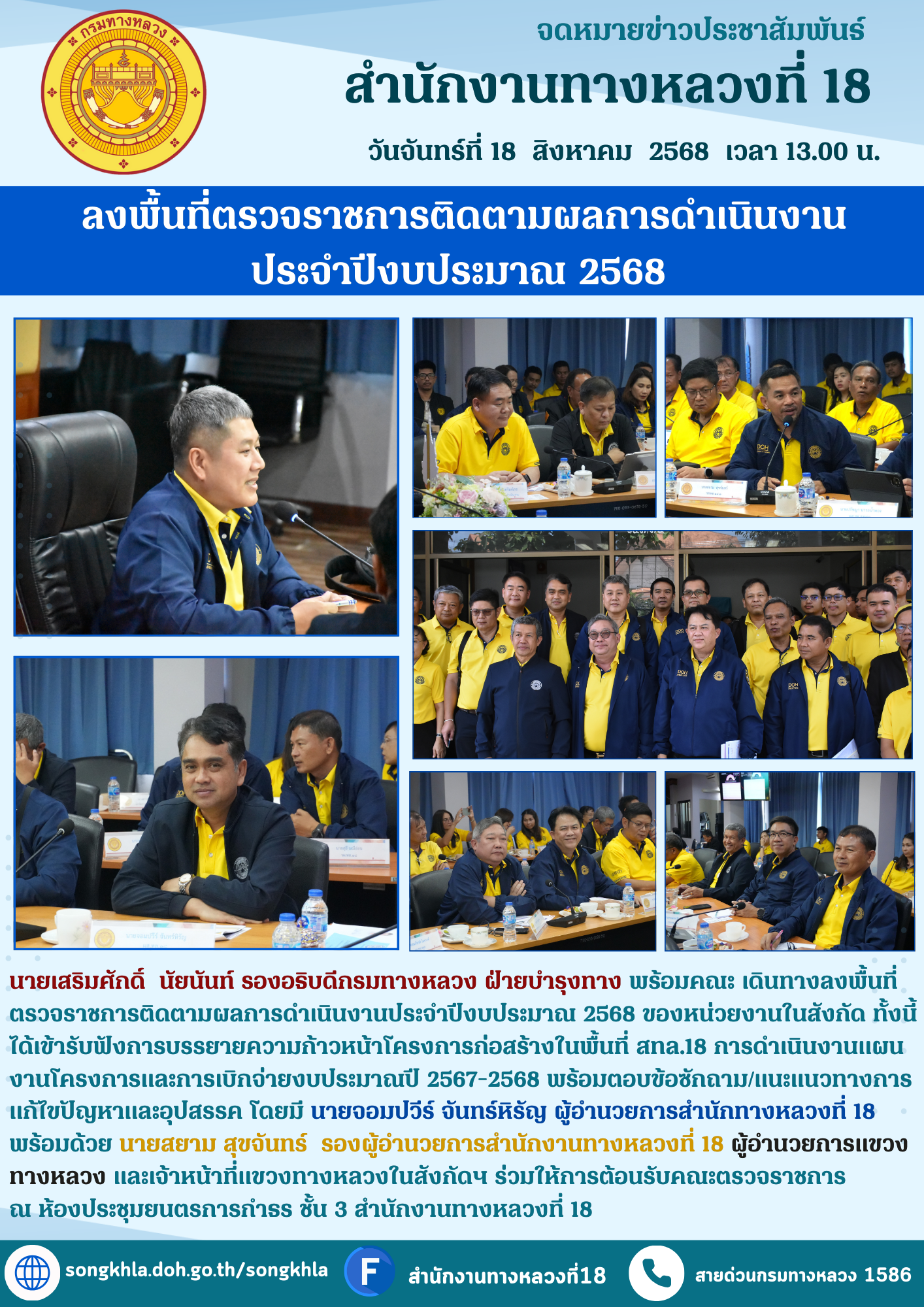 รองอธิบดีกรมทางหลวงฝ่ายบำรุงทาง ลงพื้นที่ตรวจราชการติดตามผลการดำเนินงานประจำปีงบประมาณ 2568