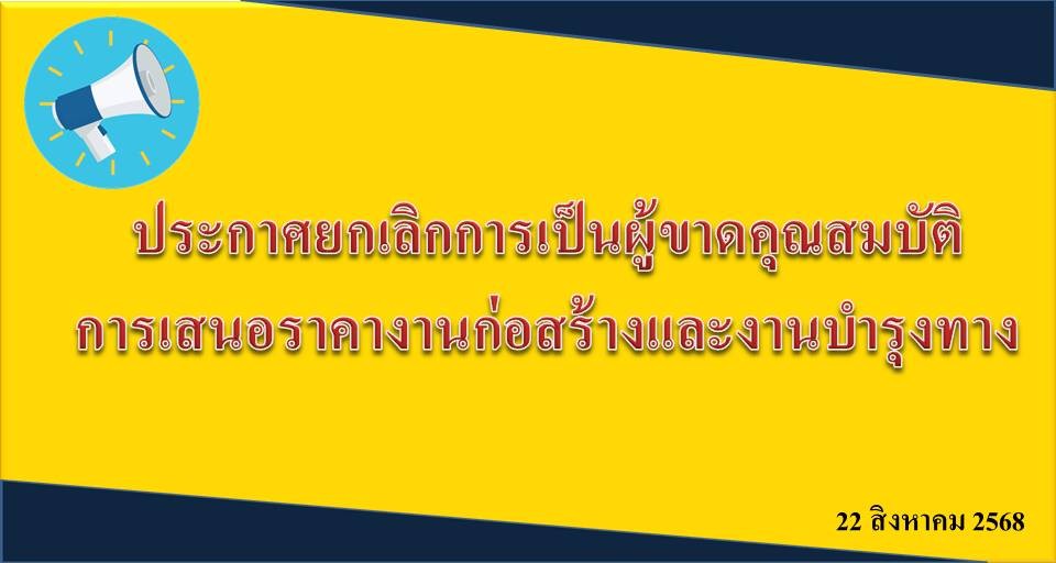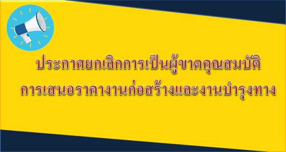 ประกาศยกเลิกการเป็นผู้ขาดคุณสมบัติในการเสนอราคางานก่อสร้างและงานบำรุงทาง
