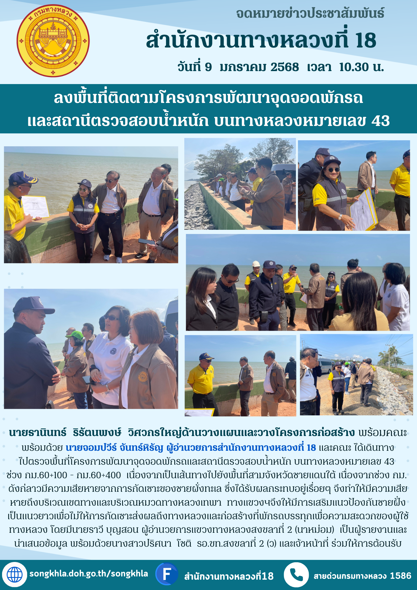 ลงพื้นที่ติดตามโครงการพัฒนาจุดจอดพักรถและสถานีตรวจสอบน้ำหนัก บนทางหลวงหมายเลข 43