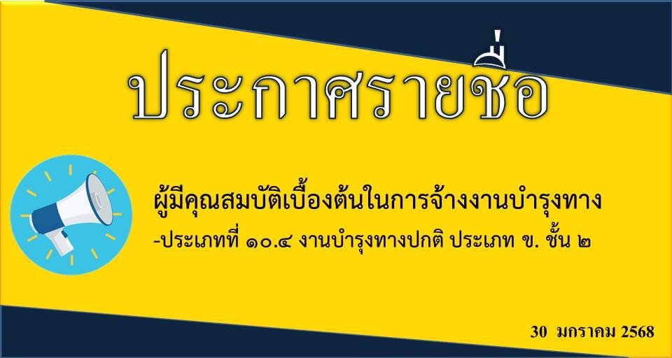 ประกาศรายชื่อ ผู้มีคุณสมบัติเบื้องต้นในการจ้างงานบำรุงทาง -ประเภทที่ 10.4 งานบำรุงทางปกติ ประเภท ข. ชั้น 2