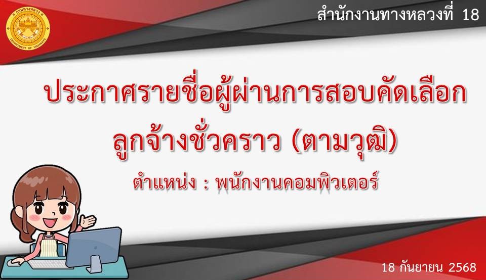 ข้อมูลประกาศรับสมัครพนักงานราชการ : ประกาศรายชื่อผู้ผ่านการสอบคัดเลือกลูกจ้างชั่วคราว (ตามวุฒิ) ตำแหน่ง : พนักงานคอมพิวเตอร์