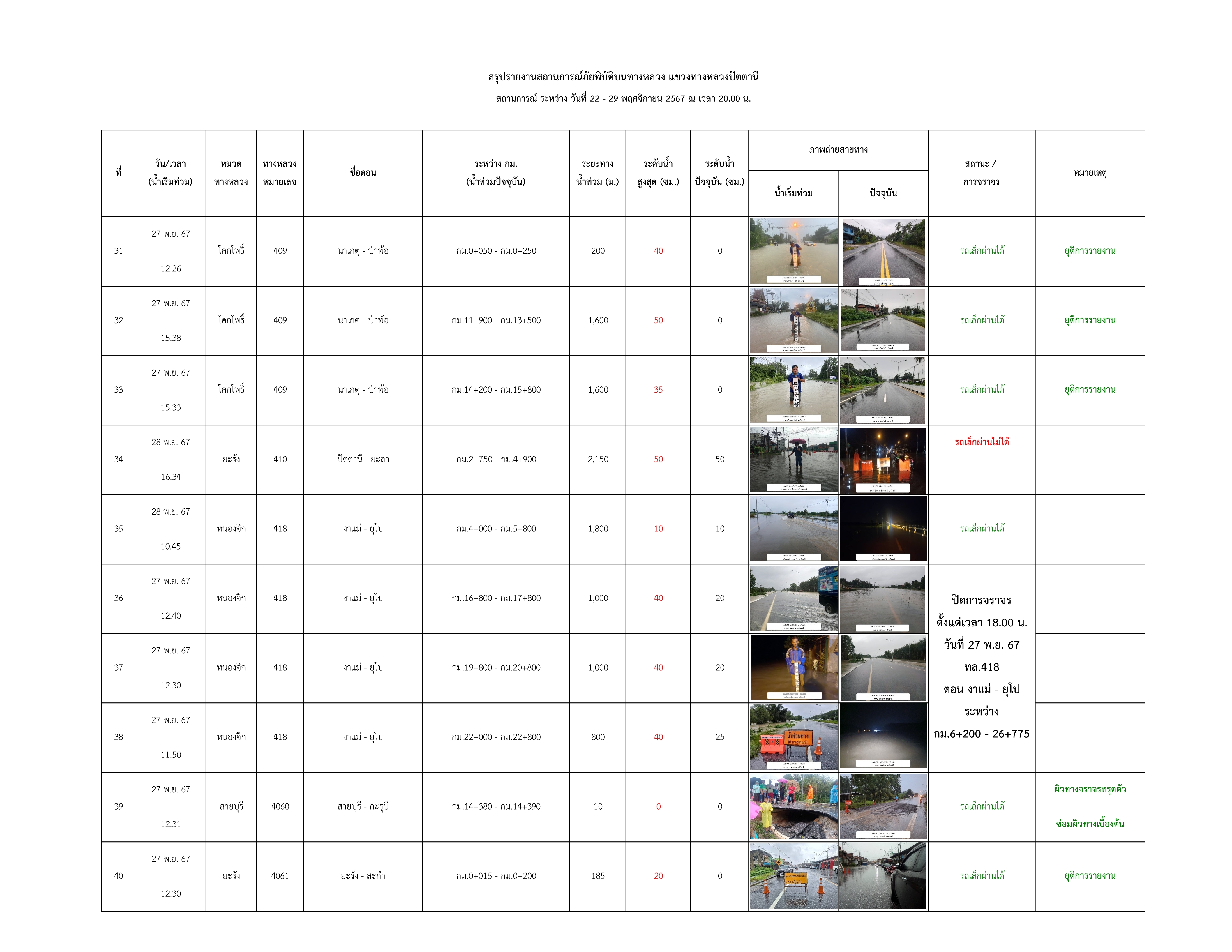 รายงานสถานการณ์น้ำท่วมในพื้นที่แขวงทางหลวงปัตตานี