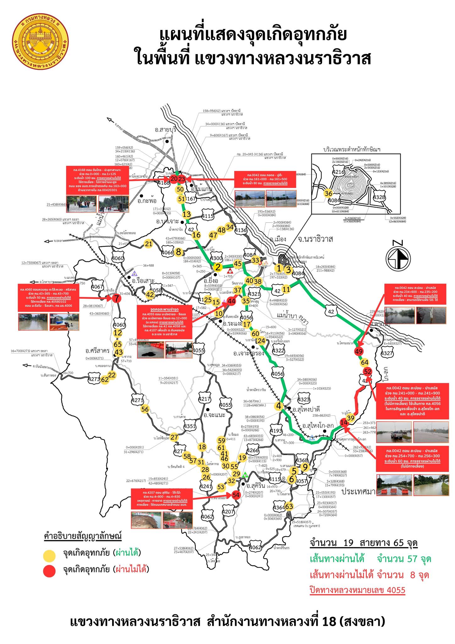 แขวงทางหลวงนราธิวาส ขอรายงานสถานการณ์อุทกภัยในพื้นที่จังหวัดนราธิวาส