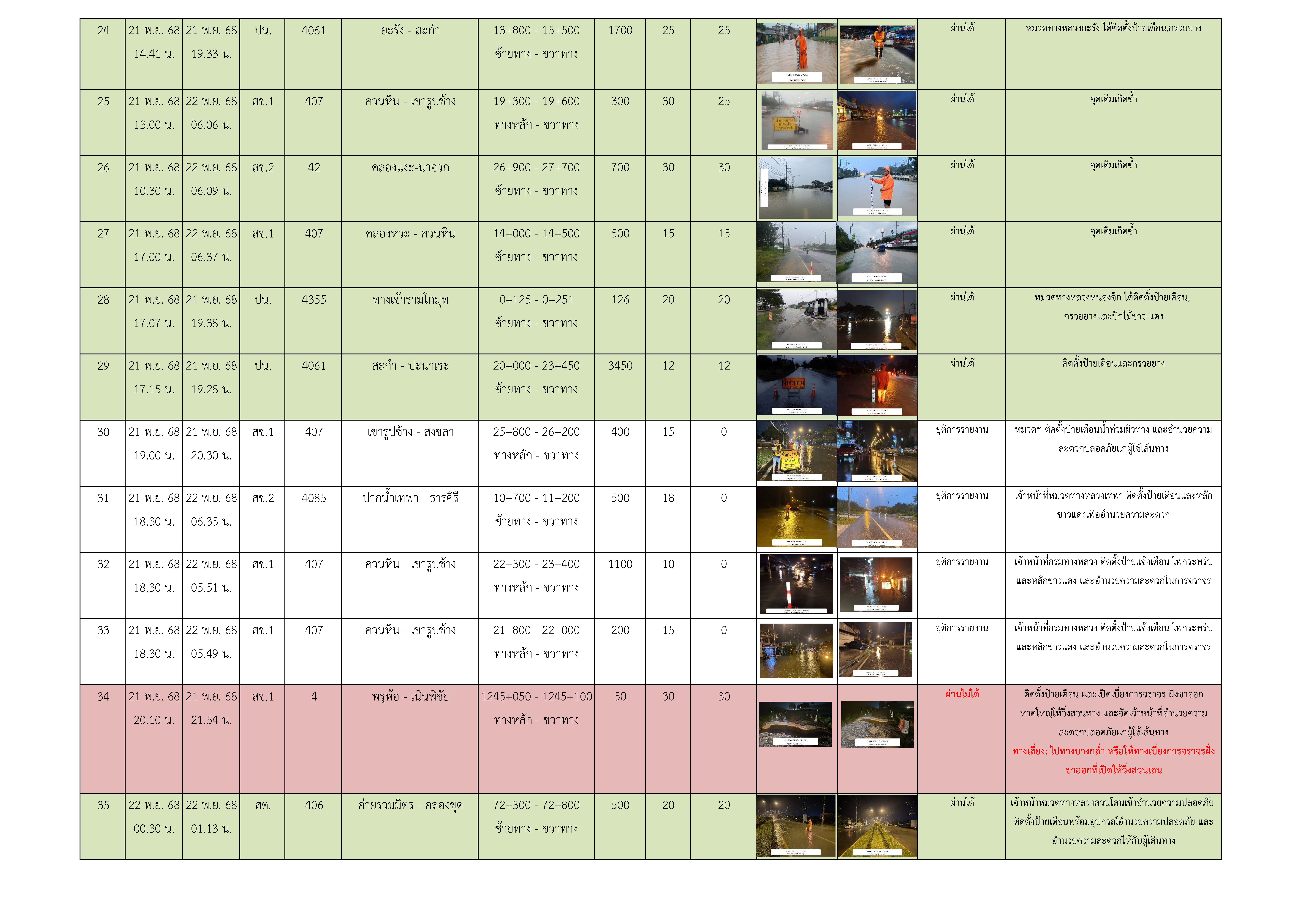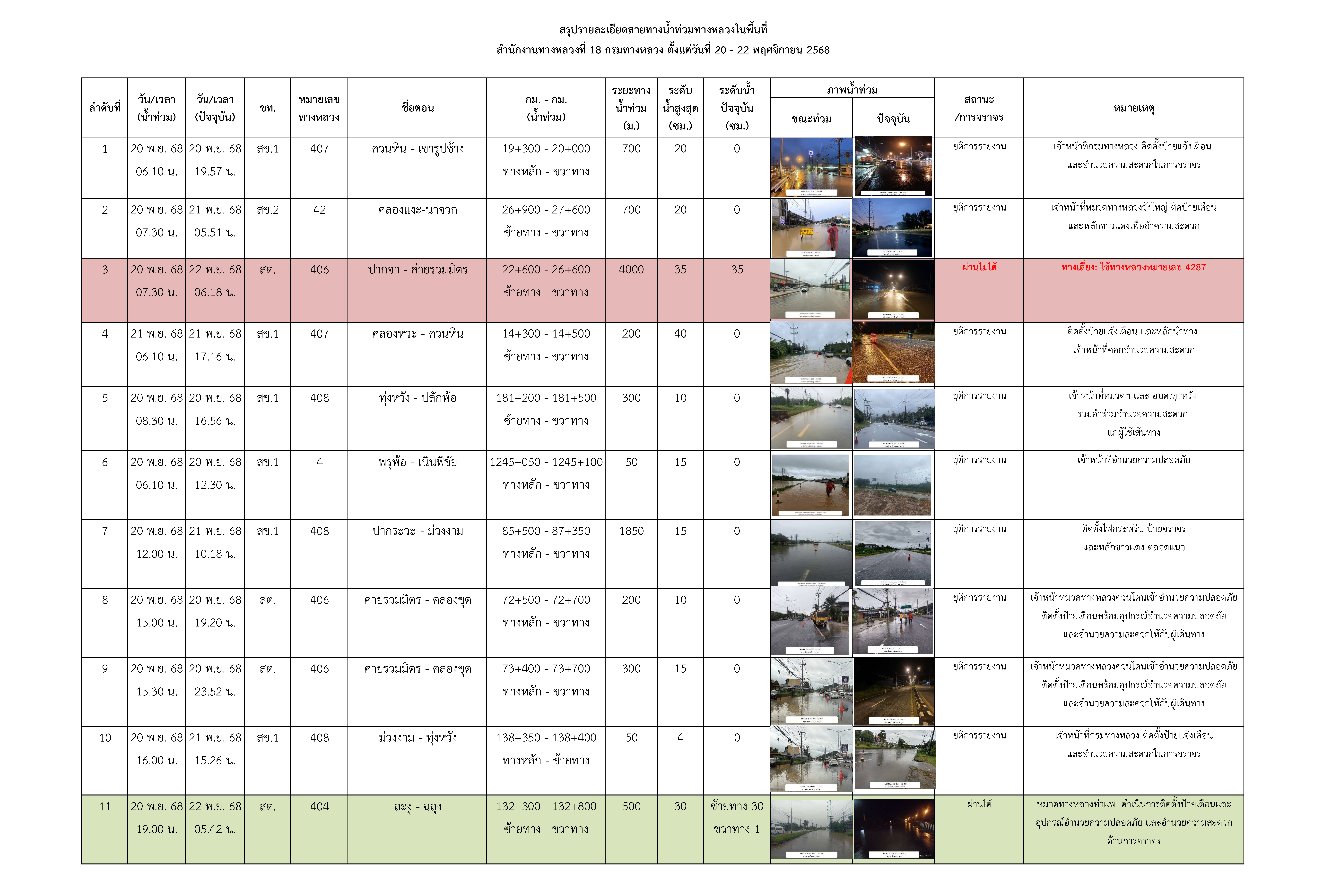 ขอรายงานน้ำท่วมในระหว่างวันที่ 20-22 พ.ย. 68 ประจำวันที่ 22 พ.ย. 68 ณ เวลา 06.00 น. ตามรายงานแนบ