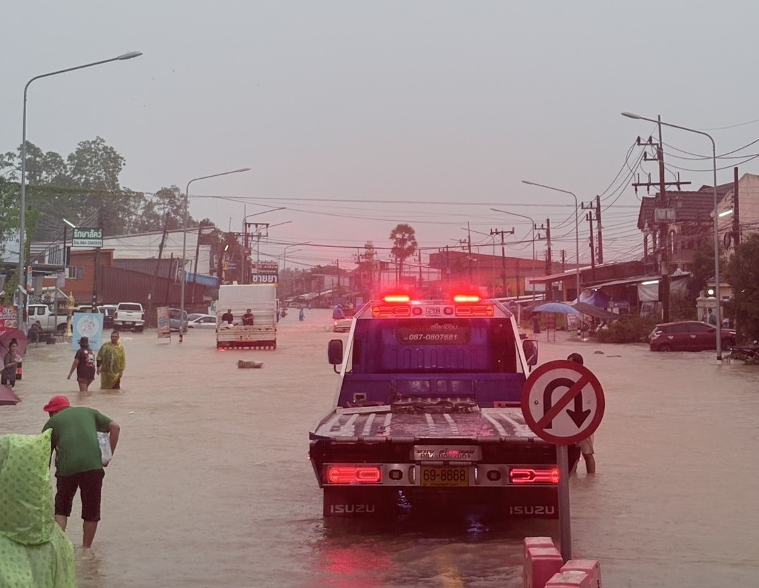 นายสยาม สุขจันทร์ รองผู้อำนวยการสำนักงานทางหลวงที่ 18 ได้นำข้าวกล่องพร้อมน้ำดื่ม จำนวน 200 ชุด ไปแจกให้กับผู้ประสบภัยบริเวณแยกคลองแห