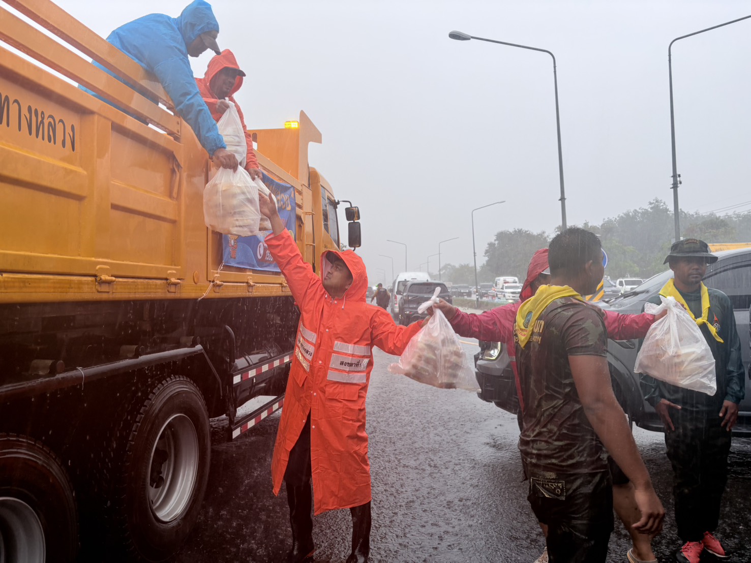สำนักงานทางหลวงที่ 18 ได้นำข้าวกล่องพร้อมน้ำดื่ม จำนวน 200 ชุด ไปแจกให้กับประชาชนที่ได้รับผลกระทบจากอุทกภัยในพื้นที่