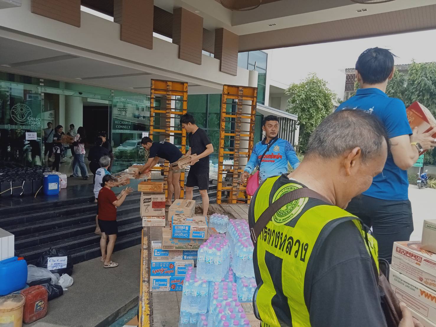 สำนักงานทางหลวงที่ 15 ได้รับภารกิจนำน้ำดื่มและอาหารแห้งจาก มทบ.42 ไปส่งที่โรงแรมบุรีศรีภู