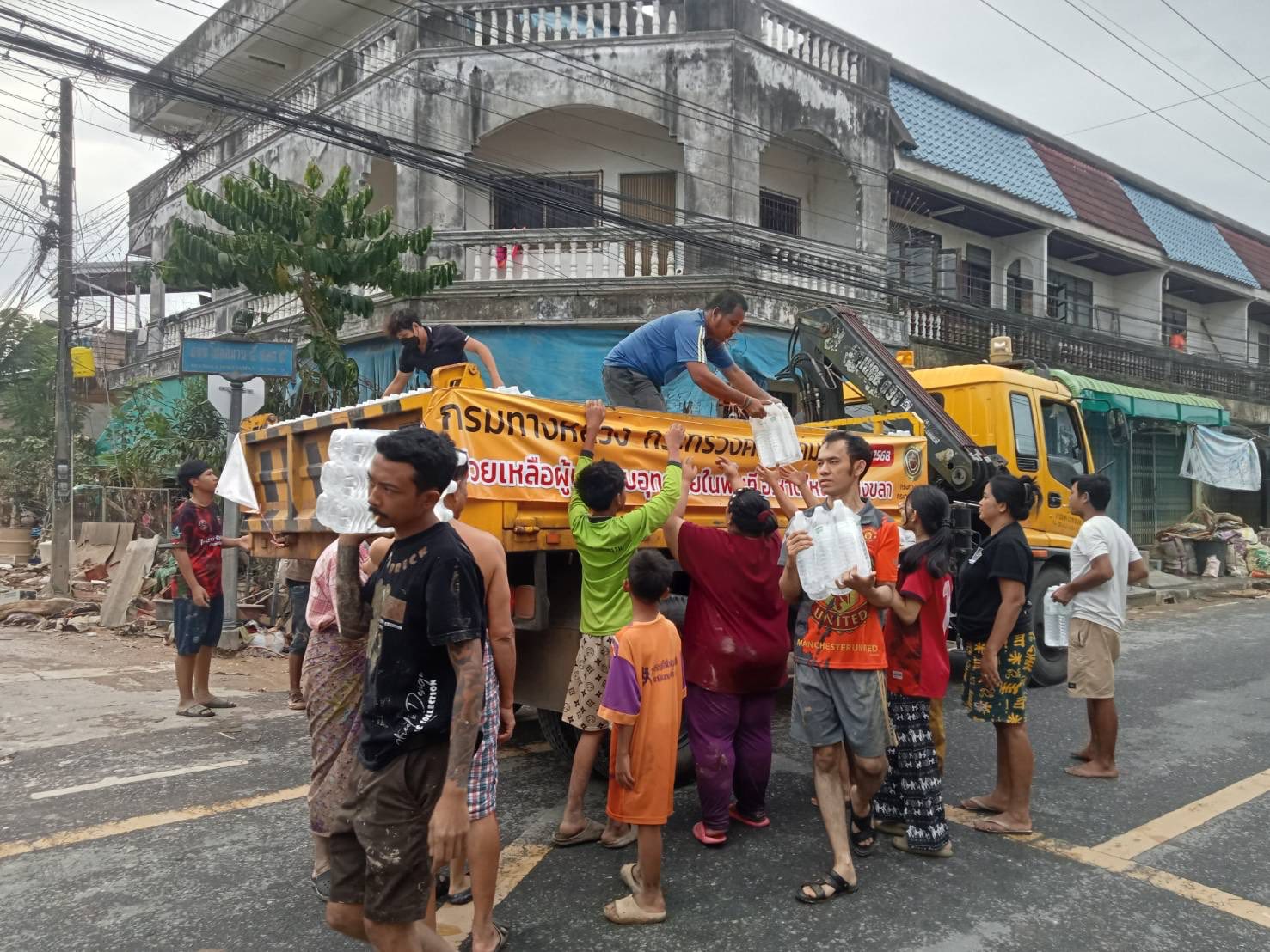 กรมทางหลวง "จิตอาสาคมนาคม“ โดยรถคาราวาน ได้ลงพื้นที่แจกจ่ายถุงยังชีพพร้อมน้ำดื่มให้กับประชาชนผู้ประสบอุทกภัยในพื้นที่น้ำท่วมในตัวเมือง อ.หาดใหญ่