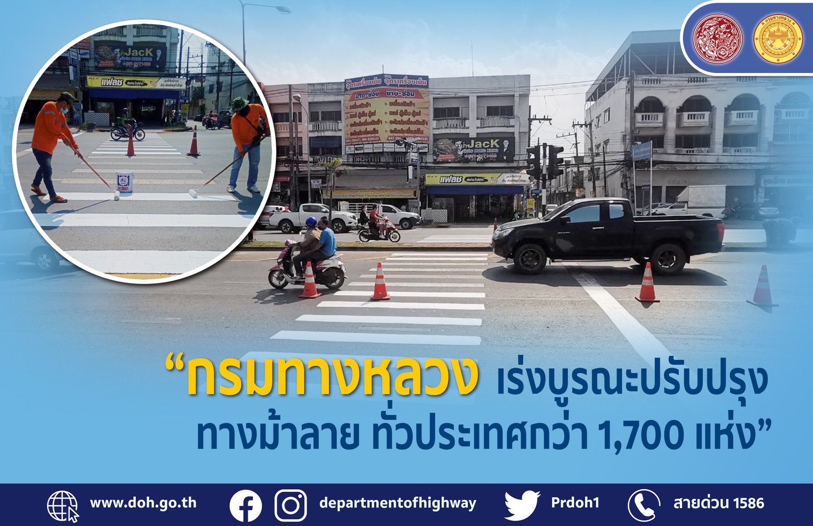 กรมทางหลวง เร่งบูรณะปรับปรุงทางม้าลายบนทางหลวงทั่วประเทศกว่า 1,700 แห่ง คาดแล้วเสร็จภายในเดือนเมษายน 2565