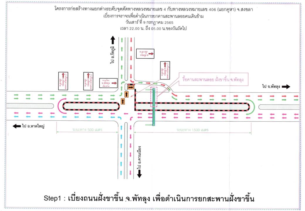 ดำเนินการเบี่ยงการจราจร เพื่อยกคานสะพานลอยคนข้ามบริเวณแยกคูหา ในวันเสาร์ที่ 9 กรกฎาคม 2565 เวลา 22.00 น. ถึง เวลา 05.00 น. ของวันถัดไป