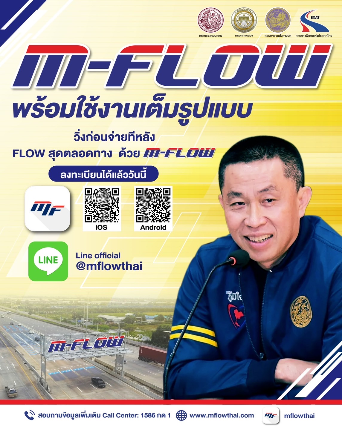 จึงเตรียมเพิ่มโปรโมชั่นสำหรับผู้สมัครใช้บริการแบบเต็มรูปแบบผ่านทาง Website : www.mflowthai.com หรือ Mobile Application : mflowthai จะได้สิทธิ์วิ่งฟรี 2 เที่ยว พร้อมรับส่วนลด 20% ทุกเที่ยวที่วิ่งตลอด 3 เดือน เพิ่มอีก 100,000 สิทธิ์ ส่วนสมาชิก M-Pass สมัครใช้บริการรับส่วนลดทันที 100 บาทเช่นเดิม และสำหรับผู้สมัครผ่าน Line Official Account : @mflowthai จะได้รับ E-Coupon ส่วนลดมูลค่า 60 บาท สำหรับใช้ซื้อสินค้าในร้าน 7-11 ทุกสาขา จำกัดจำนวน 50,000 สิทธิ์ โดยต้องเป็นผู้ที่เริ่มใช้งานและมีการหักบัตรเครดิตแล้วเท่านั้น อย่างไรก็ตาม กรมทางหลวงจะพยายามจัดสรรโปรโมชั่นที่เป็นประโยชน์ต่อสมาชิกมานำเสนออย่างต่อเนื่อง