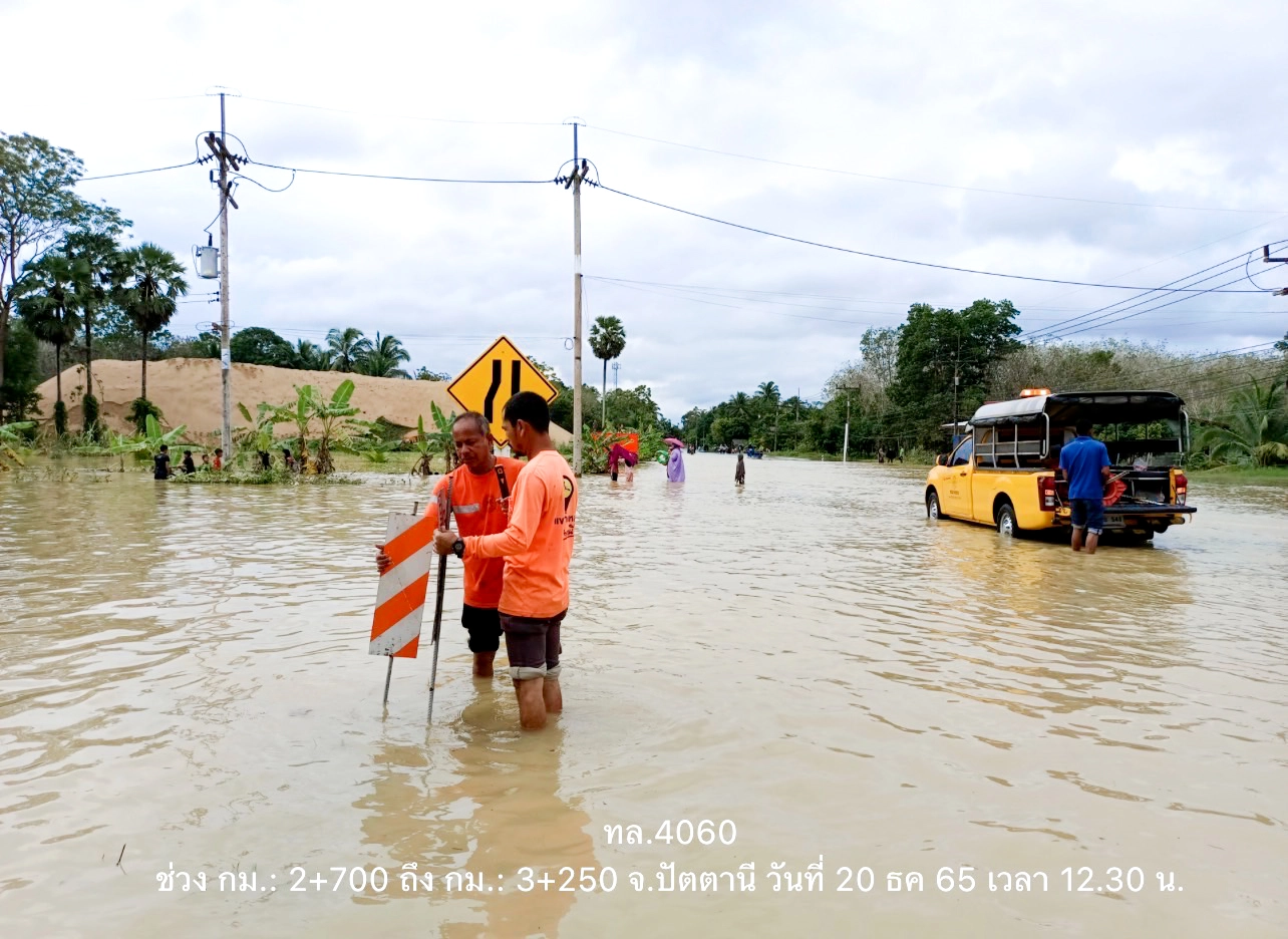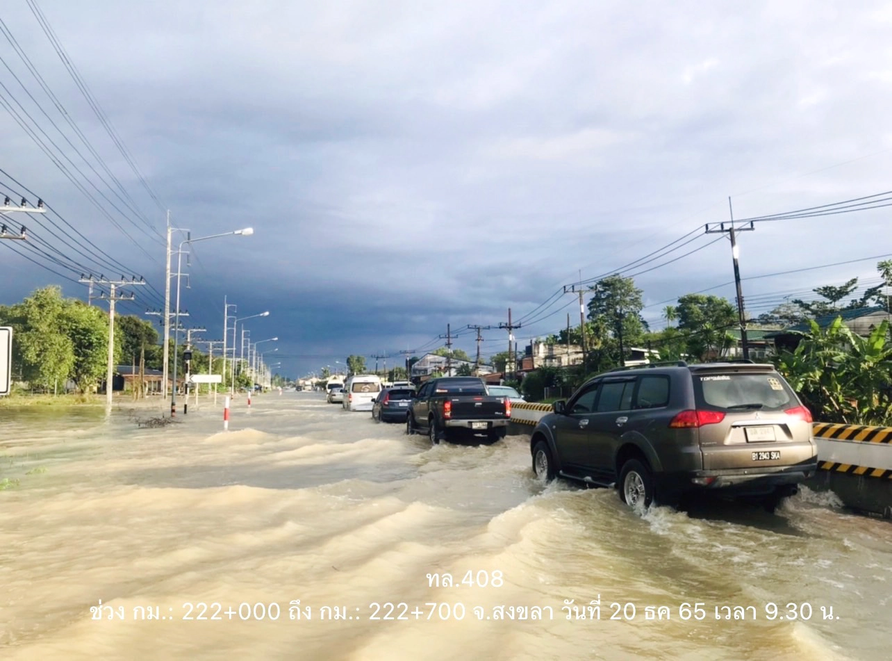 พร้อมกันนี้กรมทางหลวง ได้ทำการสรุปสถานการณ์อุทกภัยบนทางหลวง โดย สถานการณ์ประจำวันที่ 20 ธันวาคม  2565 เวลา 15.00 น. พบทางหลวงถูกน้ำท่วมในพื้นที่ภาคใต้ จำนวน 4 จังหวัด ได้แก่ จังหวัดสงขลา, จังหวัดยะลา, จังหวัดปัตตานี, จังหวัดนราธิวาส จำนวน 16 สายทาง 18 แห่ง  ที่การจราจรผ่านไม่ได้ 4 แห่ง ดังนี้