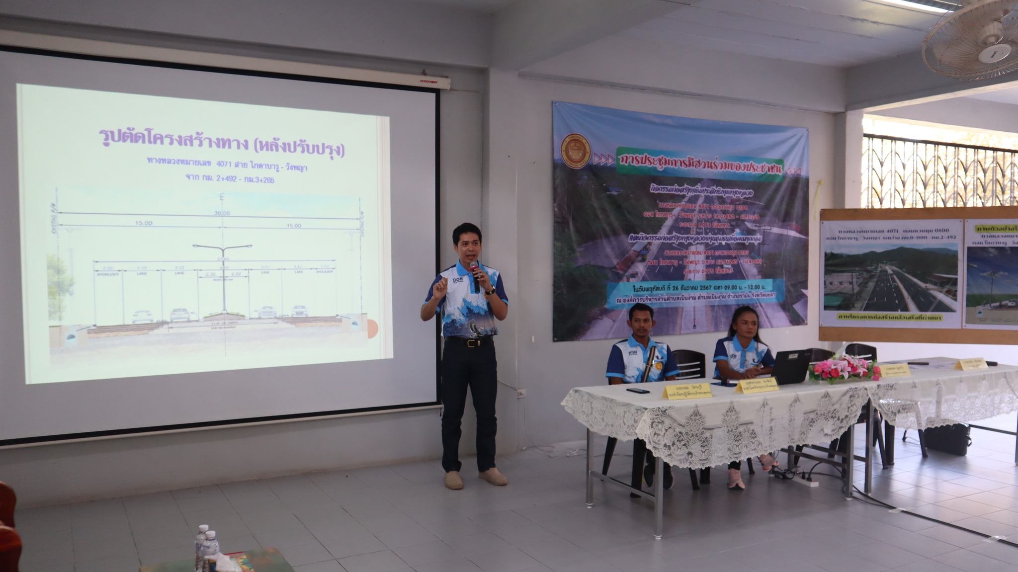 ในวันพฤหัสบดี ที่ 26 ธันวาคม 2567 เวลา 09.00 - 12.00 น. แขวงทางหลวงยะลา จัดประชุมการมีส่วนร่วมของประชาชน กิจกรรมก่อสร้างเพิ่มประสิทธิภาพทางหลวง ทางหลวงหมายเลข 4071 ตอน โกตาบารู - วังพญา ระหว่าง กม.3+265 - กม.4+040 เชิญทุกภาคส่วนในการชี้แจงแสดงความคิดเห็นและข้อเสนอแนะการดำเนินกิจกรรมร่วมกัน ณ อาคารอเนกประสงค์ องค์การบริหารส่วนตำบลเนินงาม
